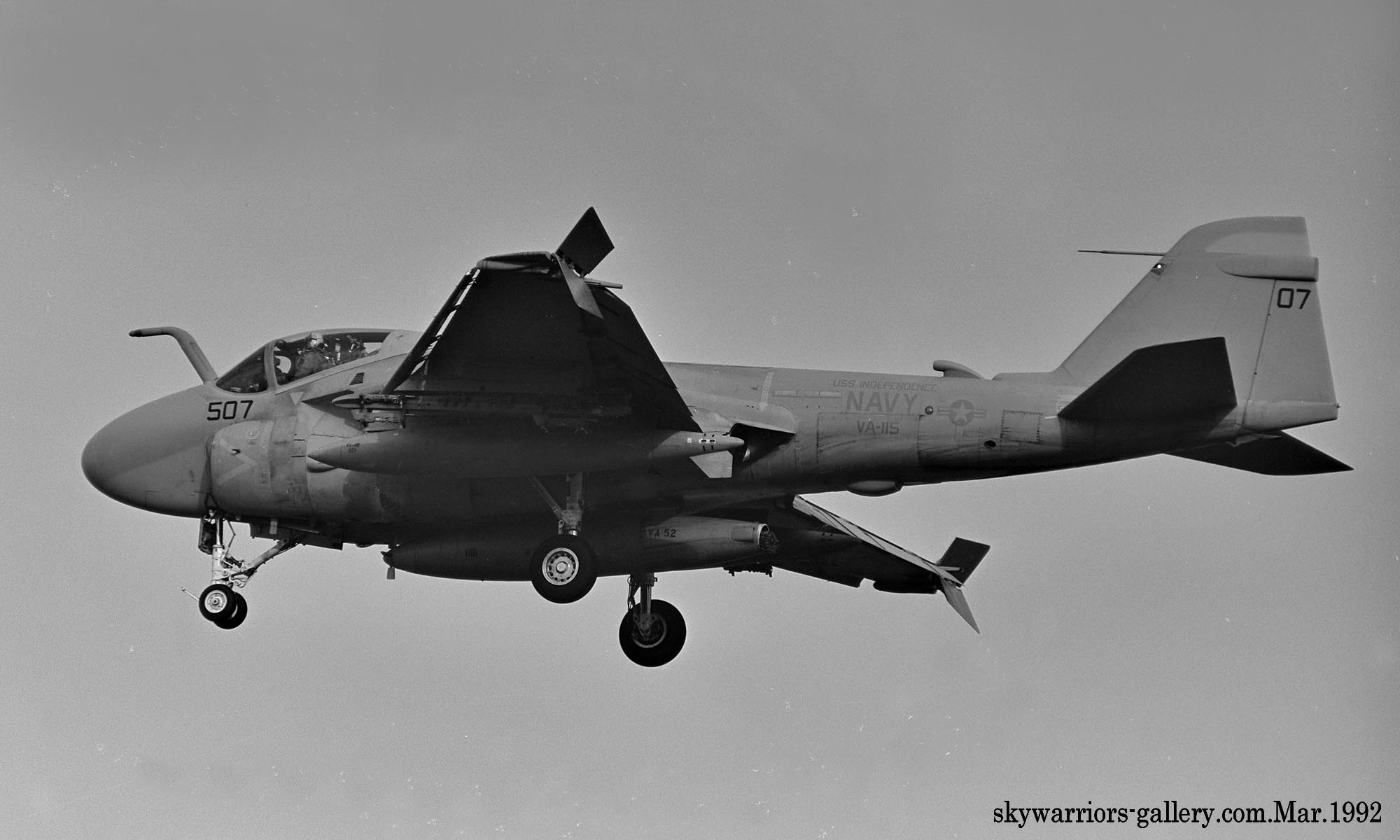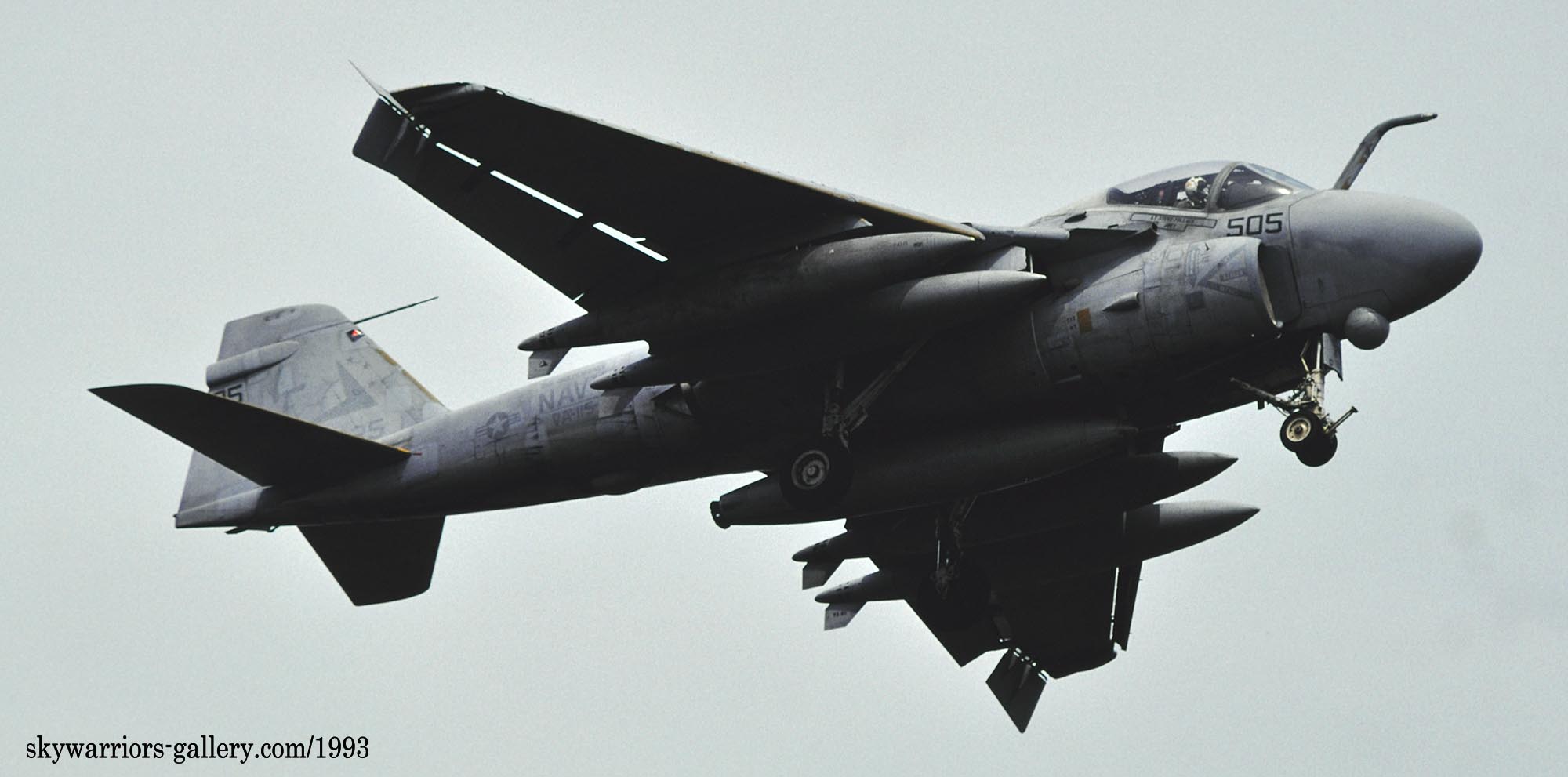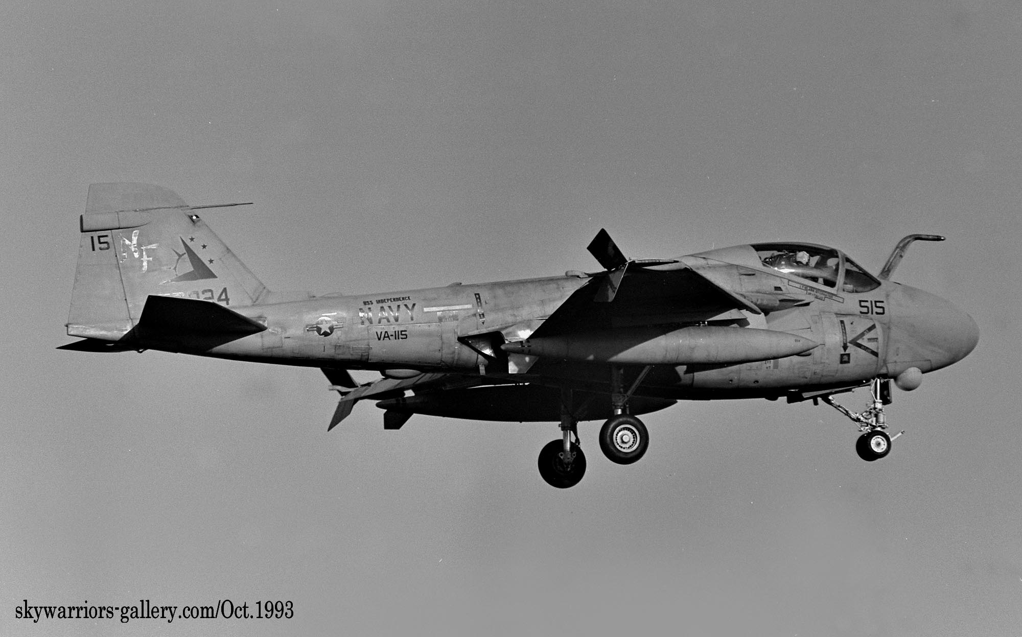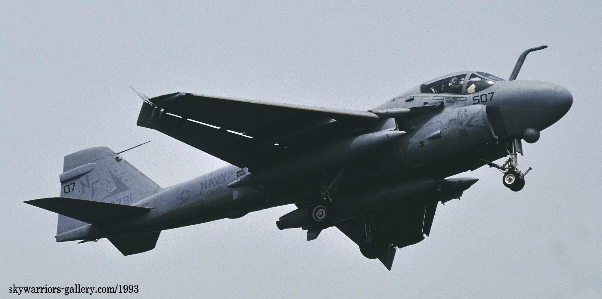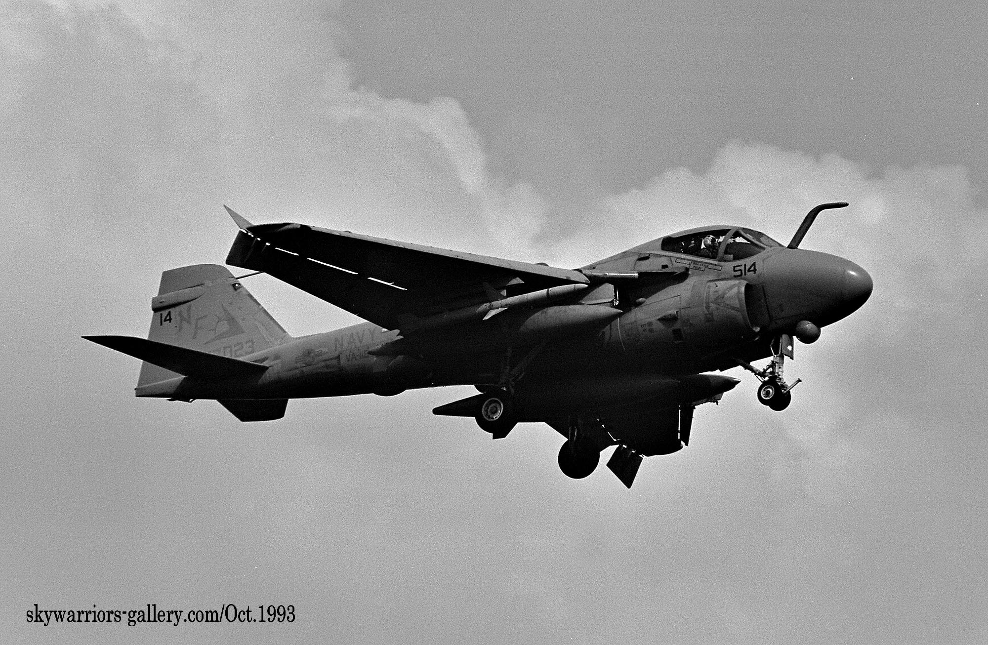 ↑ 1993年初夏 厚木基地で飛行訓練を行うVA-115のA-6E。