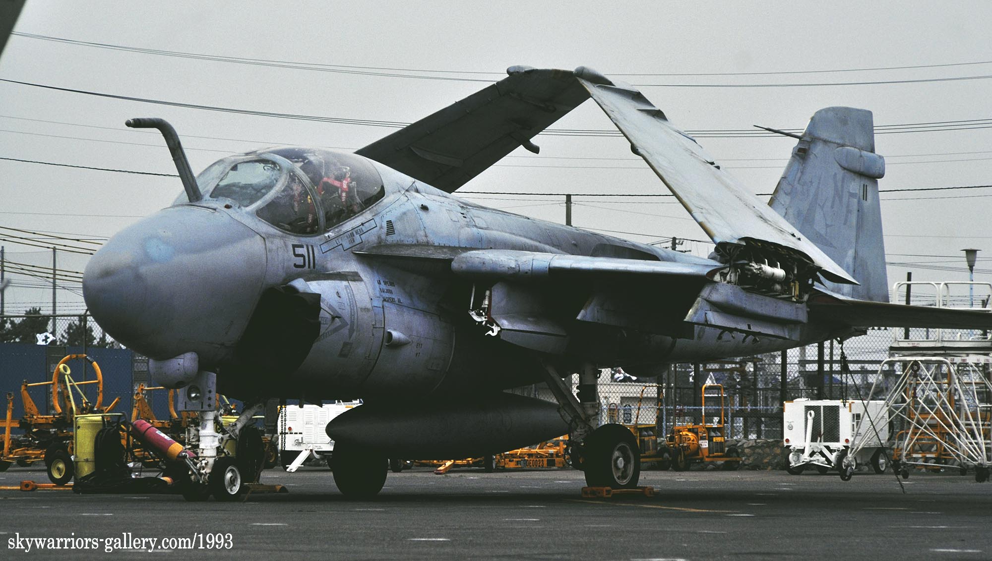 ↑ 1993年のWing93の際、厚木基地内で展示または駐機していたVA-115のA-6E。