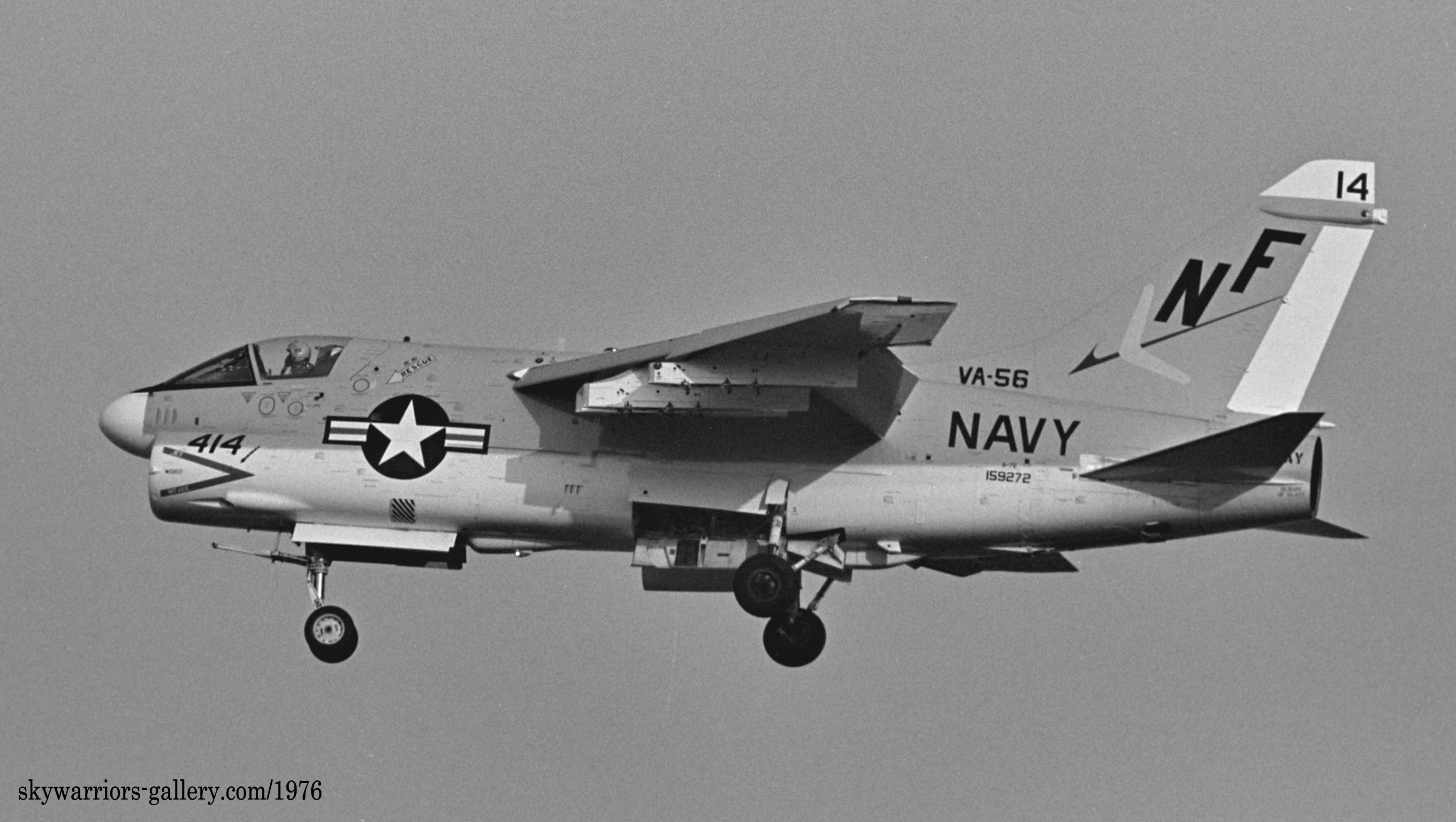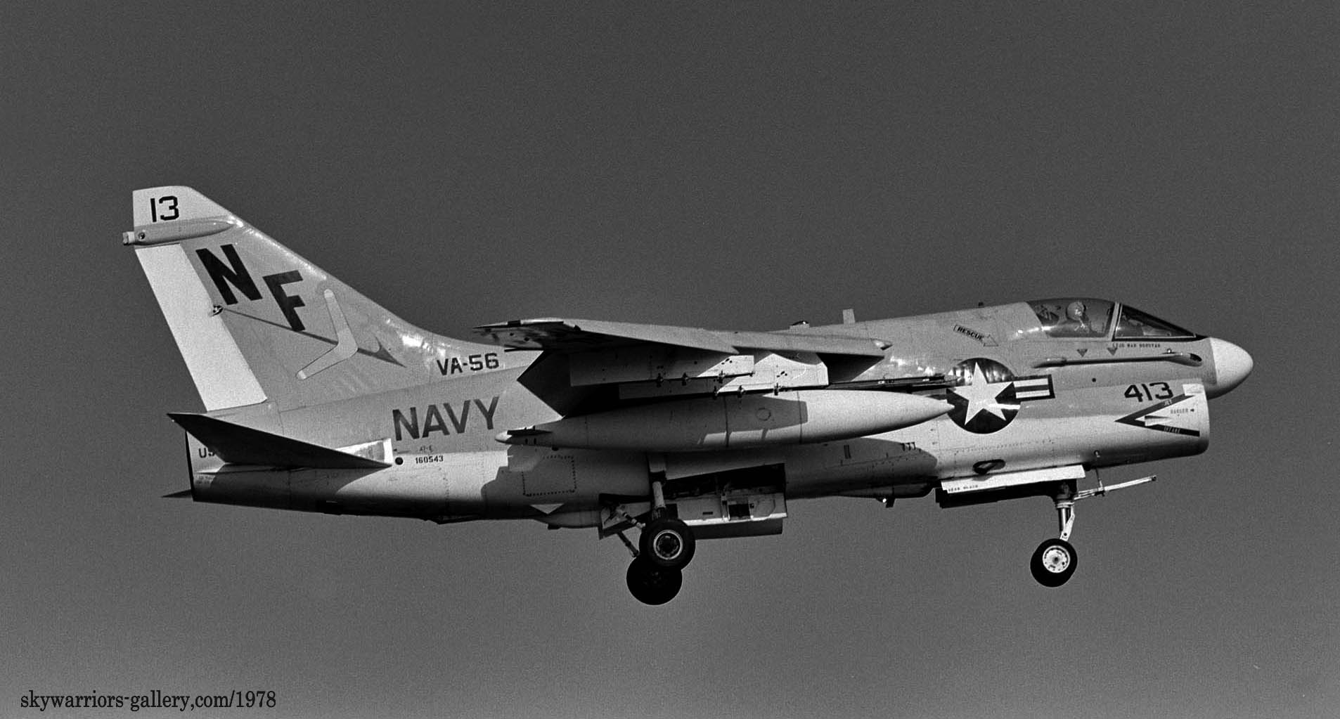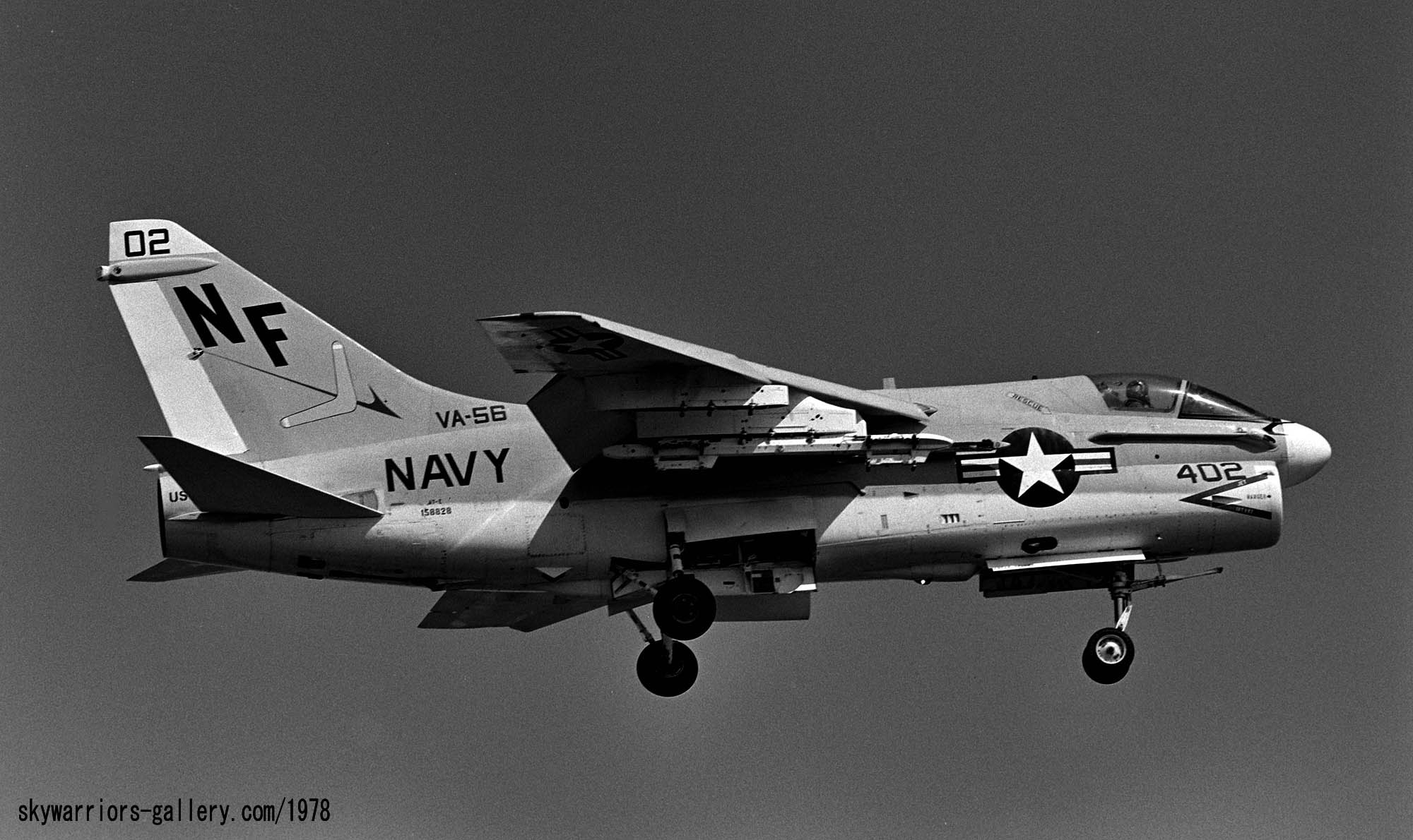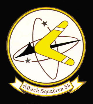 1956年に生まれF9F-3パンサーを受領して始まったVA-56の歴史は、その後クーガーやフュリーと言った戦闘機を経て、A4D-1~A-4E,C,Eと4種のA-4スカイホークを入れ替えながらベトナム戦を戦った。A-7コルセアに機種交換後もB型、A型、E型と当時の最新のものを使って戦闘の前面に出ていたのである。A-4スカイホーク使用の時代から増装タンクにブーメランを描き、1964年頃からベトナム戦にも出撃し、ラオス上空や南ベトナムで護衛任務をこなした。特に1964年の8月には、初めて北ベトナムい進入し石油貯蔵施設の爆撃、魚雷艇基地の爆撃を敢行し成果を上げている。。VA-56のレンダー・クレイトン少佐は1966年2月北ベトナムで撃墜され捕虜となって1973年まで拘束されている(彼はシルバースターを受領)。また1967年には飛行隊長シャーマン中佐を北ベトナム上空で失っているが、VA-56が多くの危険な任務を遂行していたことが分る。A-7B時代のベトナム戦では主にラインバッカー作戦に従事していたとされる。