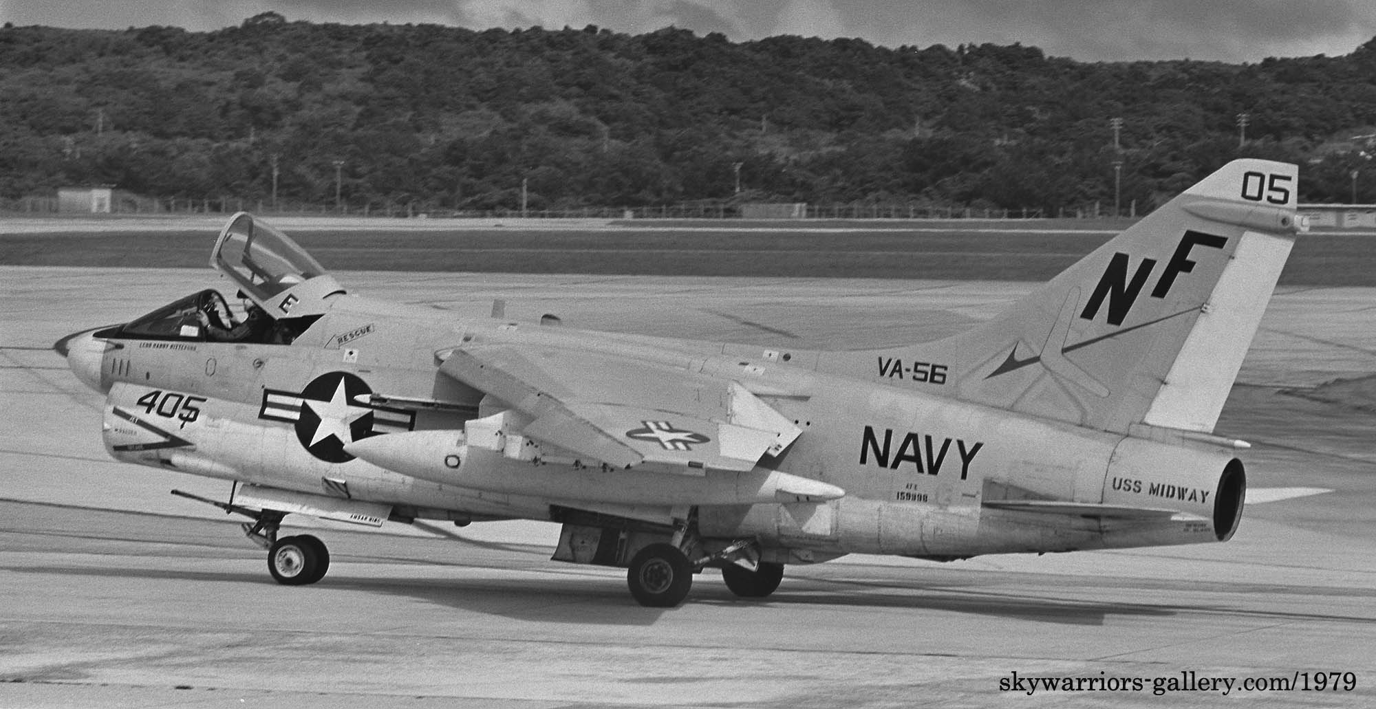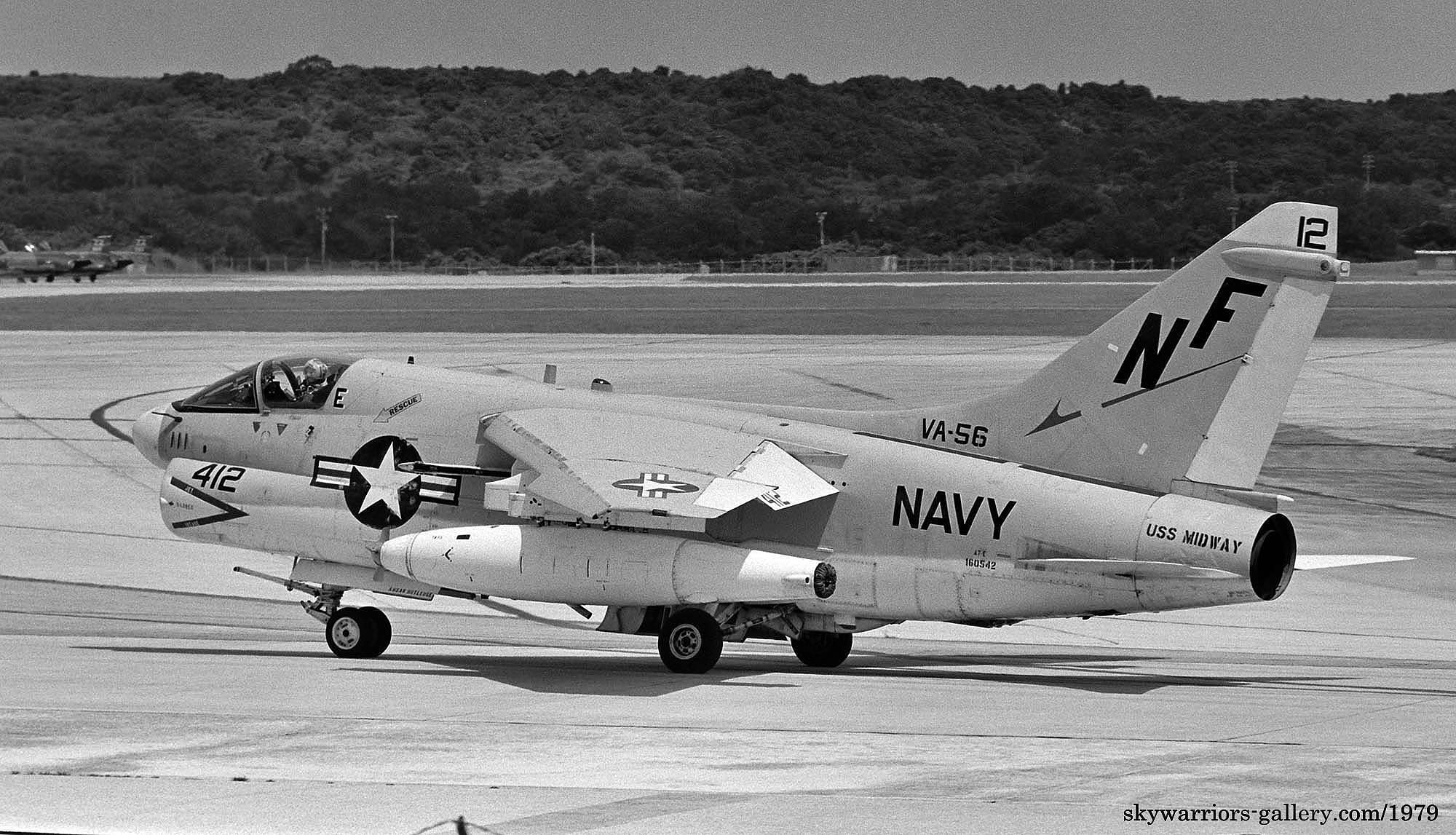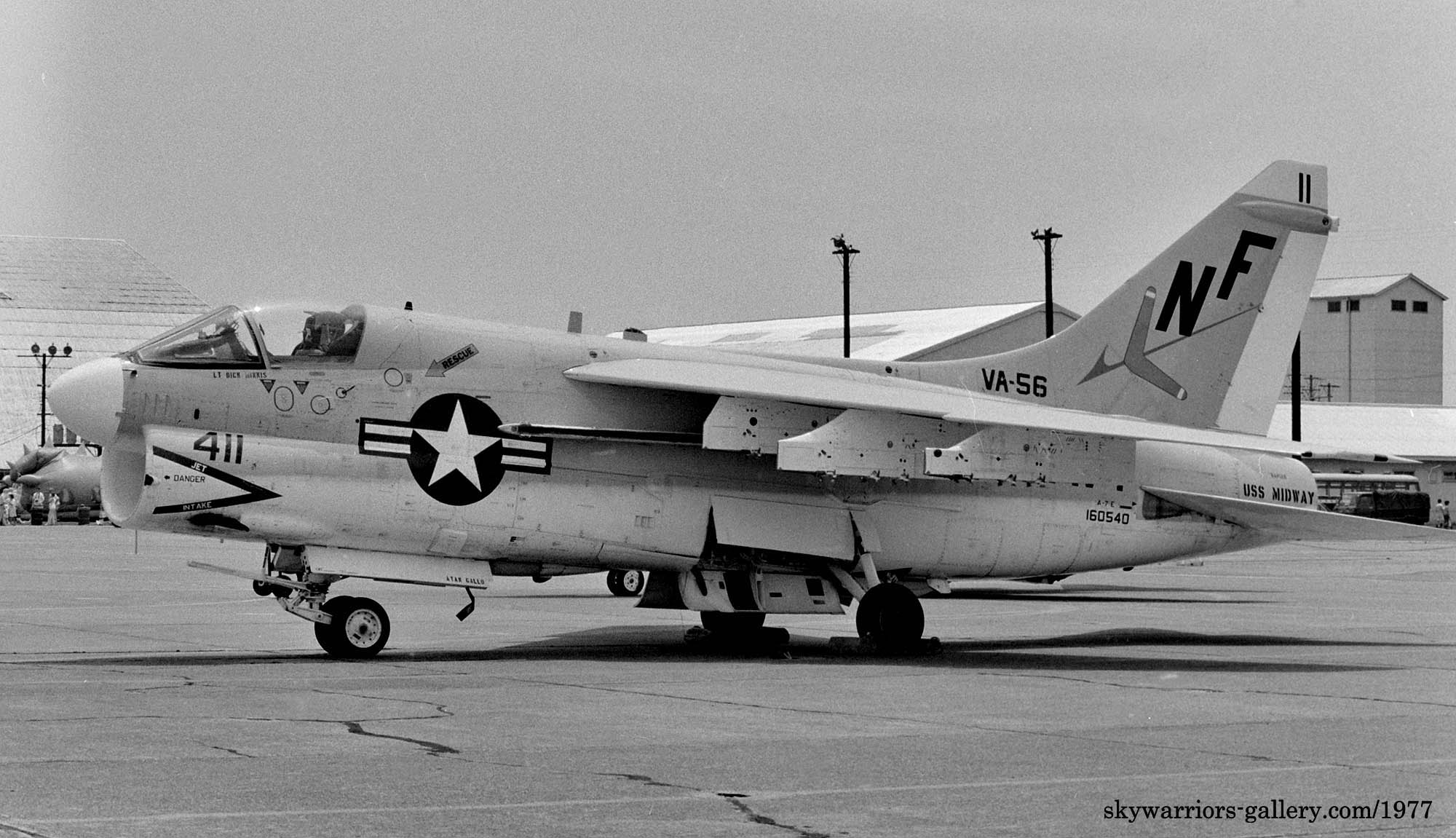 1956年に生まれF9F-3パンサーを受領して始まったVA-56の歴史は、その後クーガーやフュリーと言った戦闘機を経て、A4D-1~A-4E,C,Eと4種のA-4スカイホークを入れ替えながらベトナム戦を戦った。A-7コルセアに機種交換後もB型、A型、E型と当時の最新のものを使って戦闘の前面に出ていたのである。A-4スカイホーク使用の時代から増装タンクにブーメランを描き、1964年頃からベトナム戦にも出撃し、ラオス上空や南ベトナムで護衛任務をこなした。特に1964年の8月には、初めて北ベトナムい進入し石油貯蔵施設の爆撃、魚雷艇基地の爆撃を敢行し成果を上げている。。VA-56のレンダー・クレイトン少佐は1966年2月北ベトナムで撃墜され捕虜となって1973年まで拘束されている(彼はシルバースターを受領)。また1967年には飛行隊長シャーマン中佐を北ベトナム上空で失っているが、VA-56が多くの危険な任務を遂行していたことが分る。A-7B時代のベトナム戦では主にラインバッカー作戦に従事していたとされる。