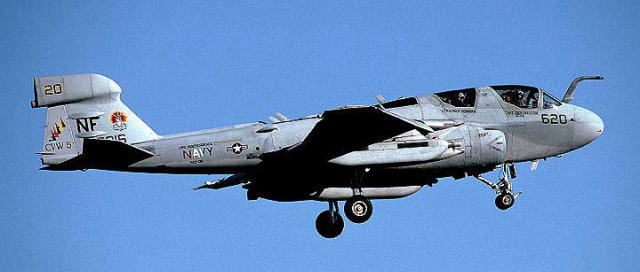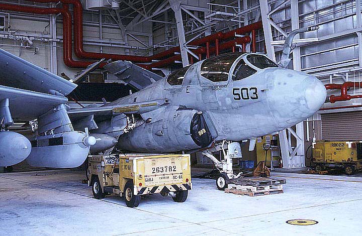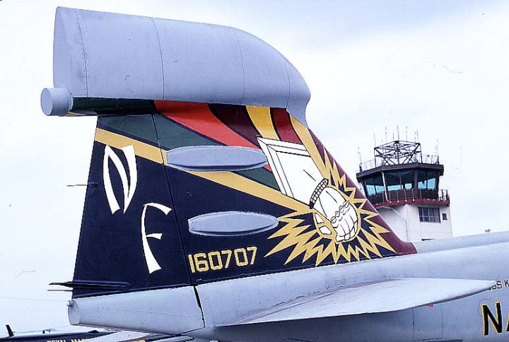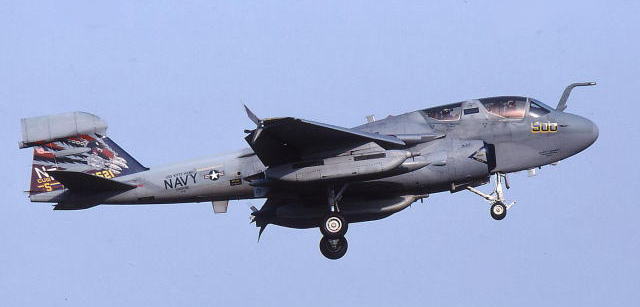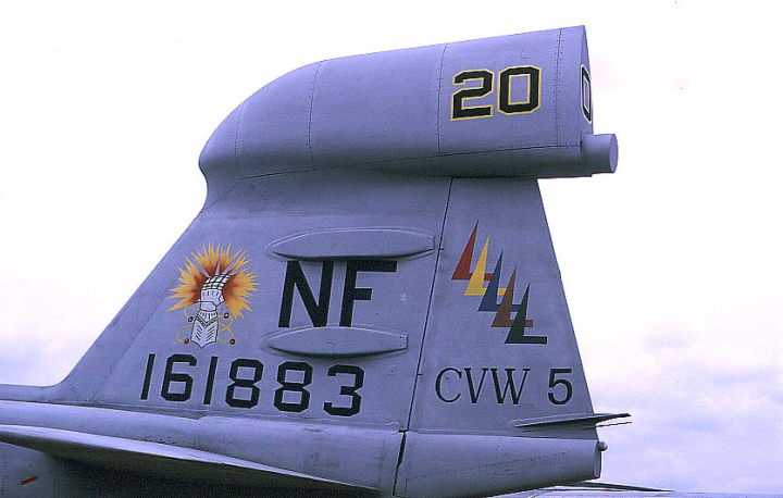 当初VAQ136は600番台のModexを付けていた。後にA-6Eを装備し 500番台のModexを使っていたVA-115(Eagles)がFA-18Eに機種転換するためCVW-5を離れた際に、600番台から500番台に変わっている。