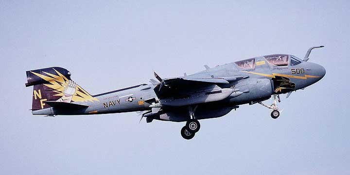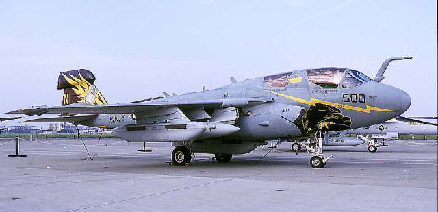 2000年の厚木のオープンハウスに展示されたEA-6B(NF-500)、従来のVAQ-136の塗装の中で最も派手なマーキングであった。