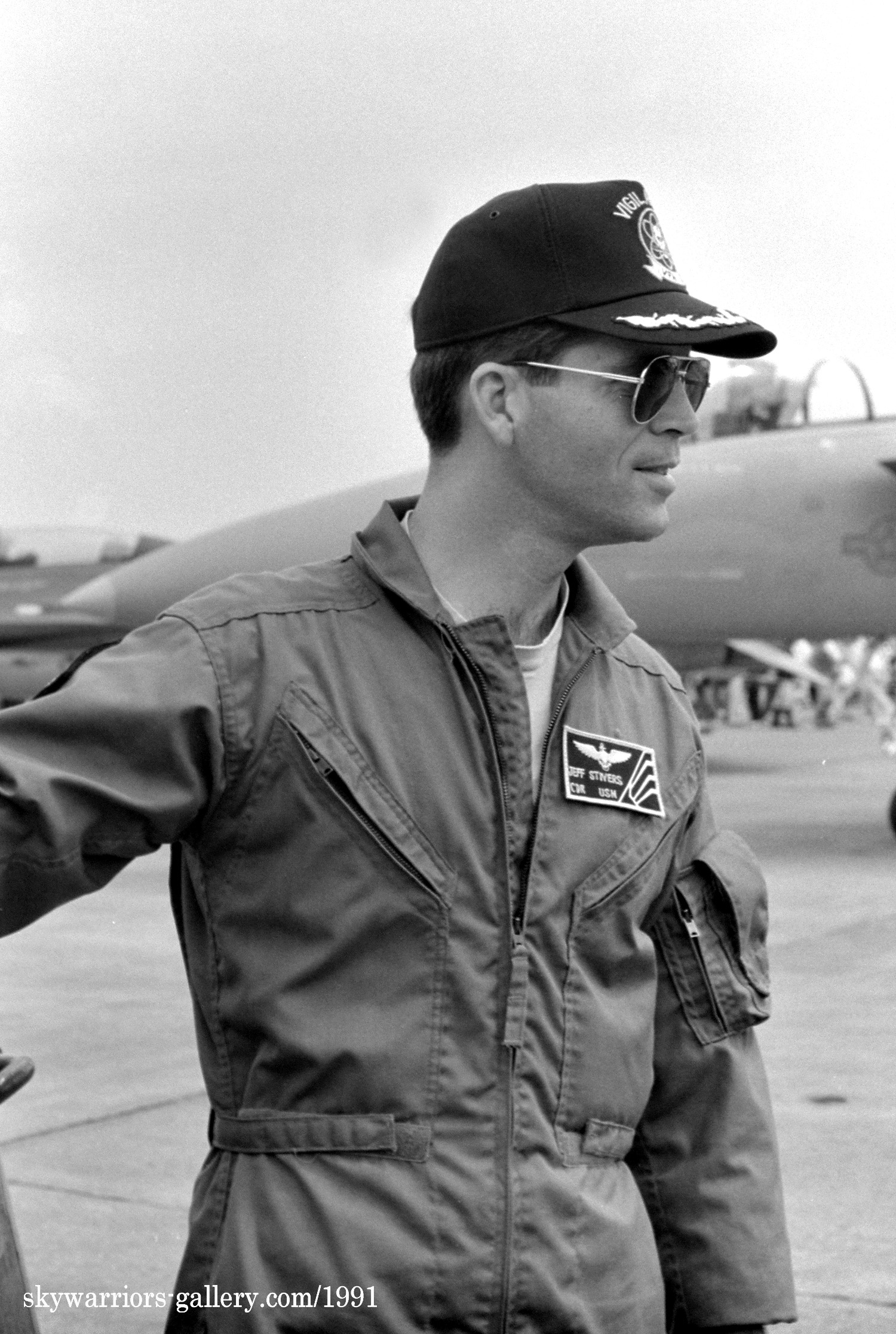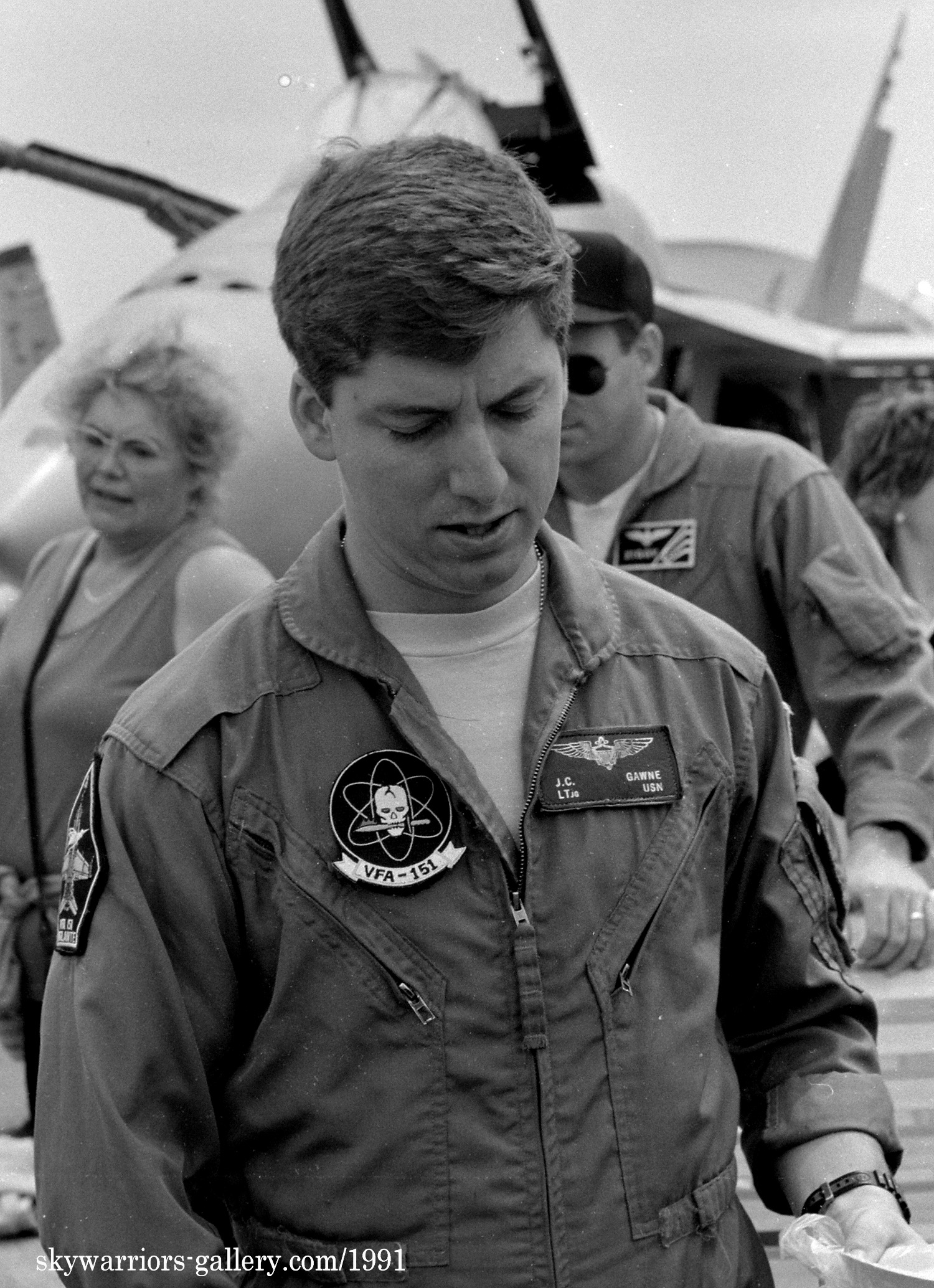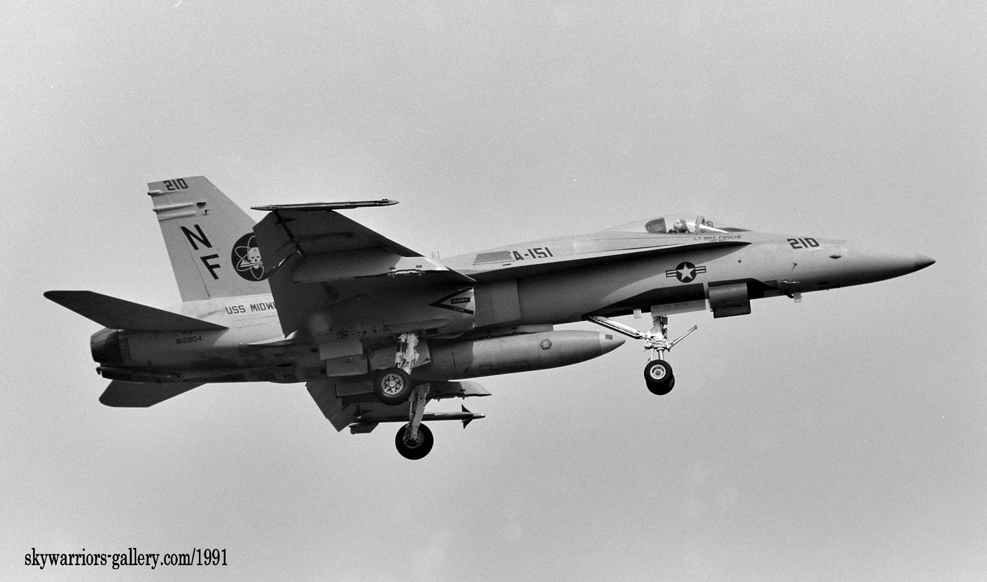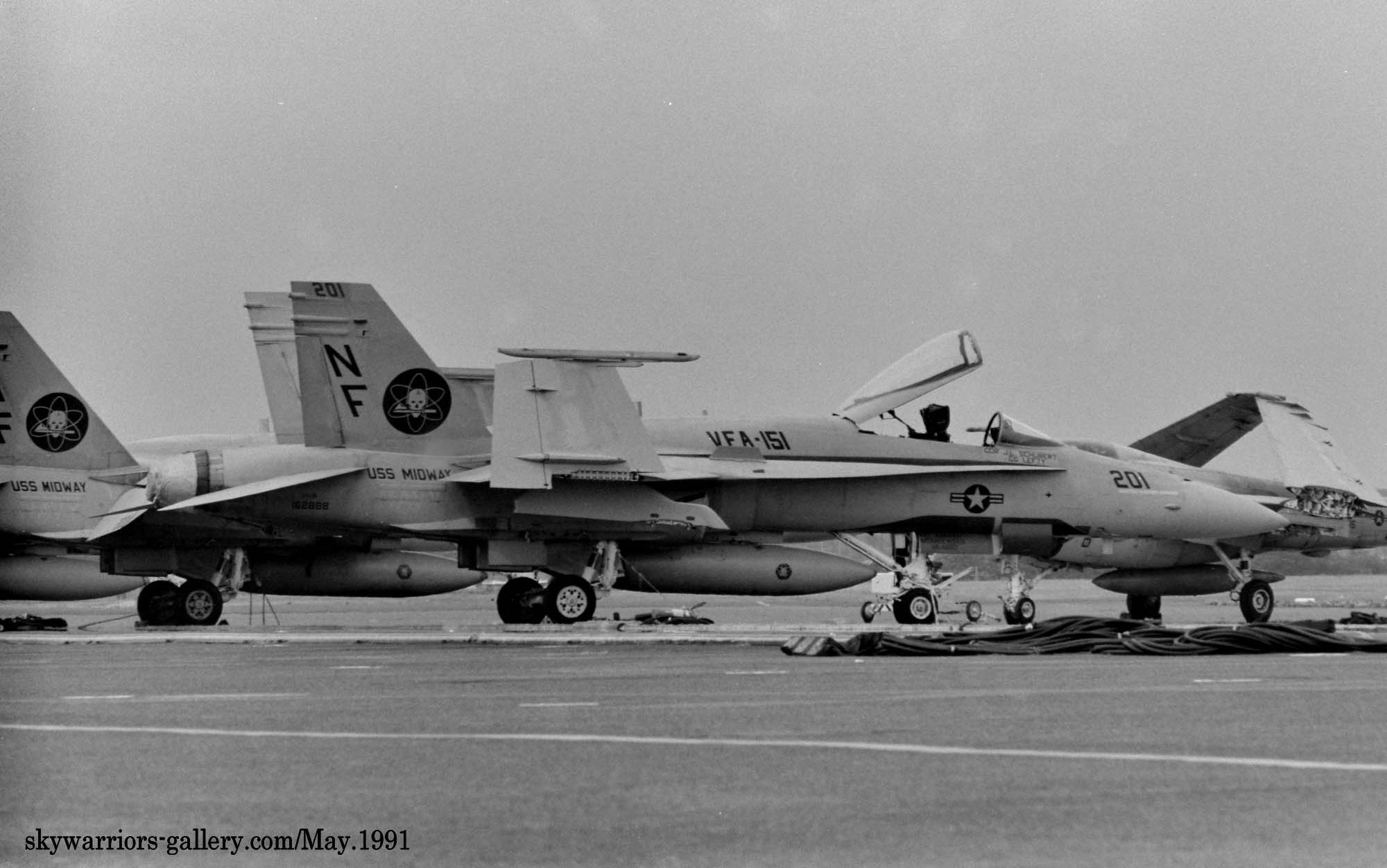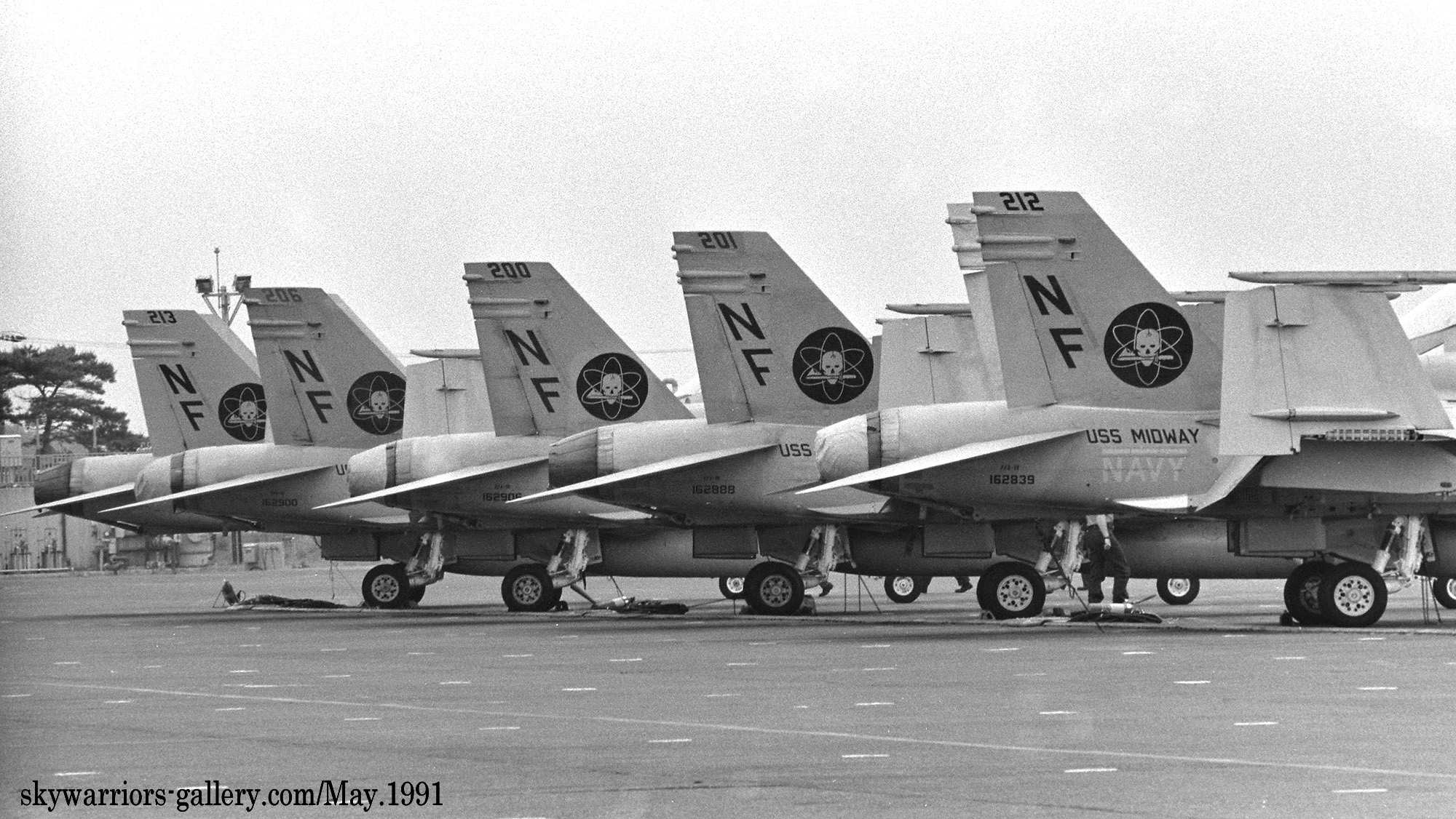 ↑ こうした光景が見れれば、各機のビューアルナンバーが掌握しやすい。NF-200番(Bu.No.162906)もまだ僚機と同じロービジ塗装である。"NAVY"と空母の艦名だけが、ライトグレーで薄く書かれているのが、この年の特徴。