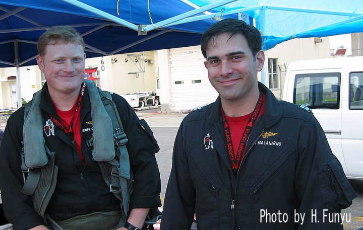 ↑2002年3月フラットレー中佐はモンガー中佐と交代しVF-154のCOに就任。親子3代のNAVY一家で、お祖父さんは海軍中将迄なられたそうである。( )は撮影年。