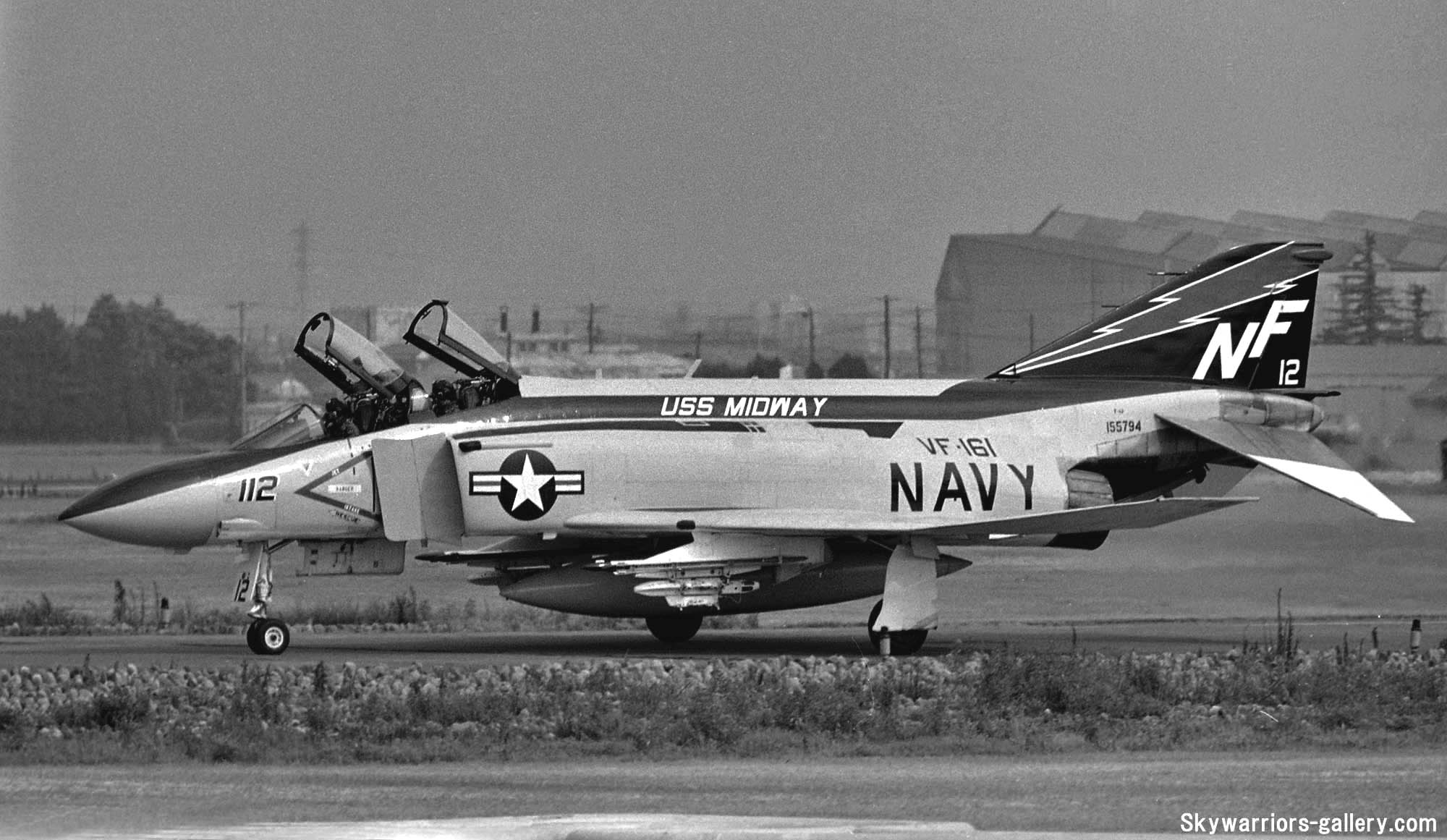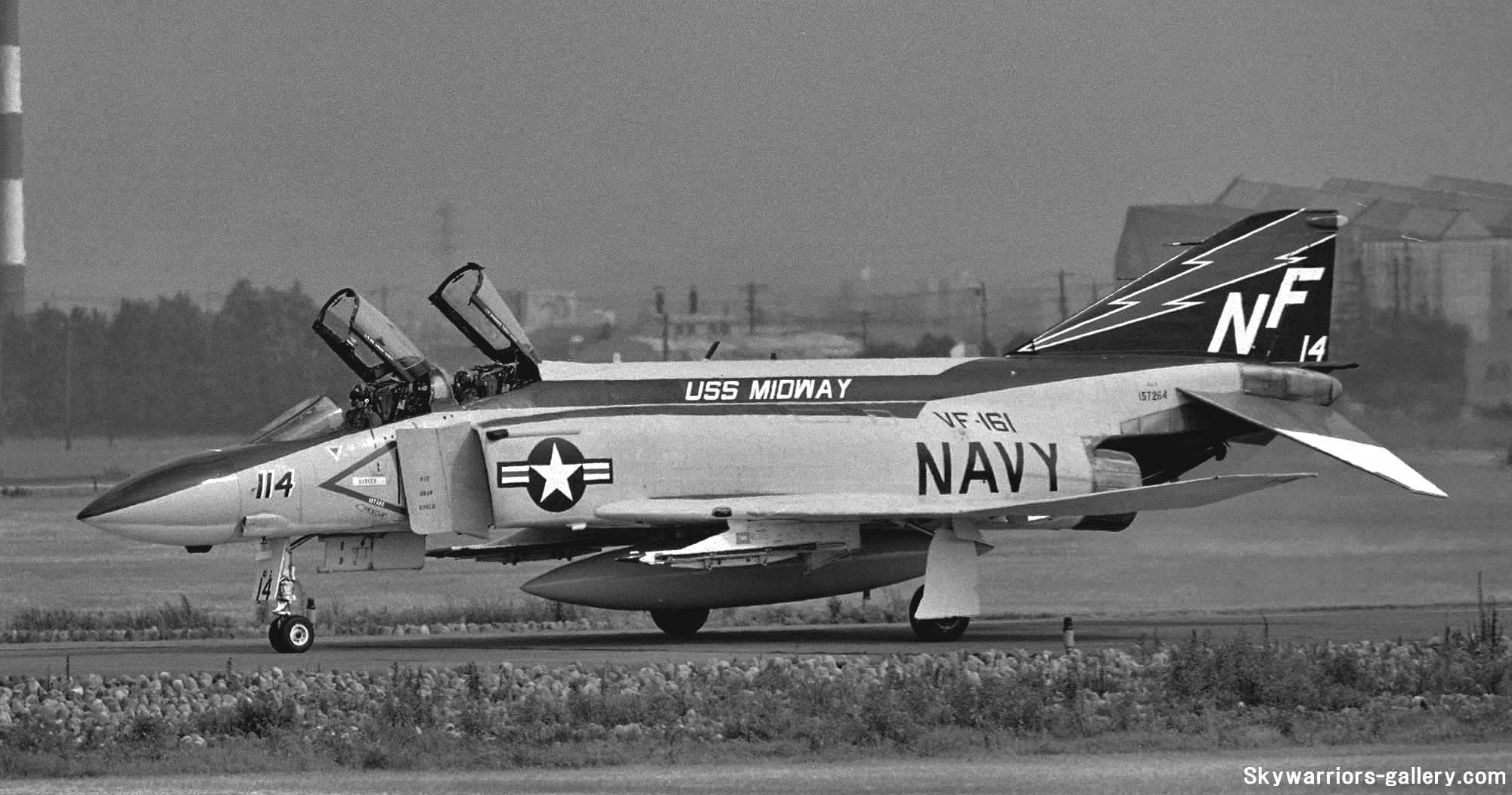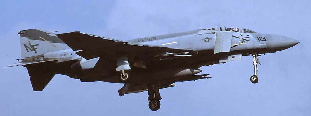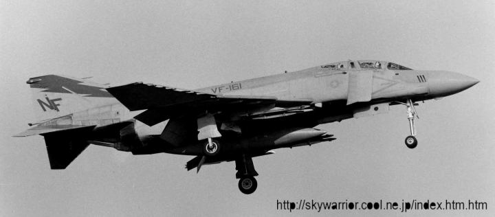 ↑ CVW-5のベースであった厚木基地で飛行訓練を行っていたVF-161のF-4J。機体左側面の写真はR/W01の午後、右面の写真はR/W19の午後の着陸で、共に2時過ぎ位から光線状態が良くなっていく。