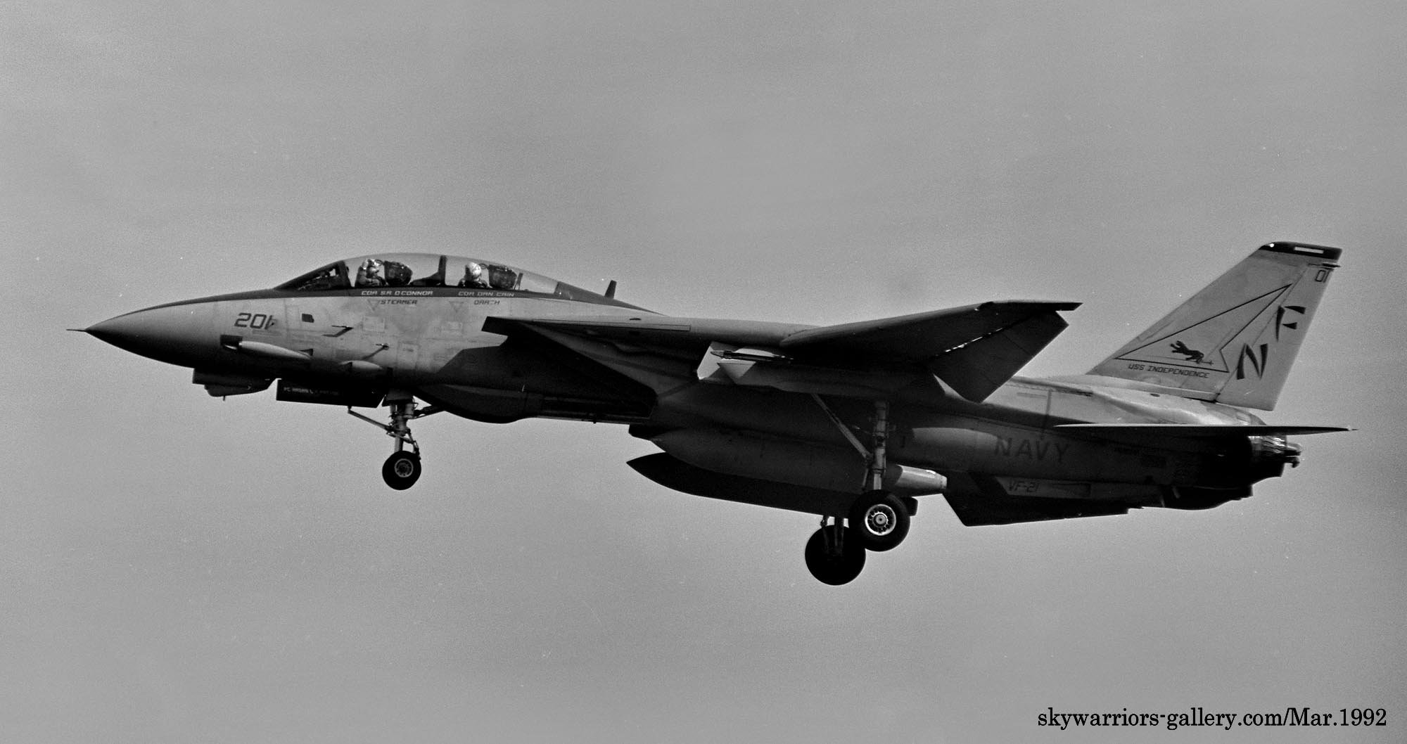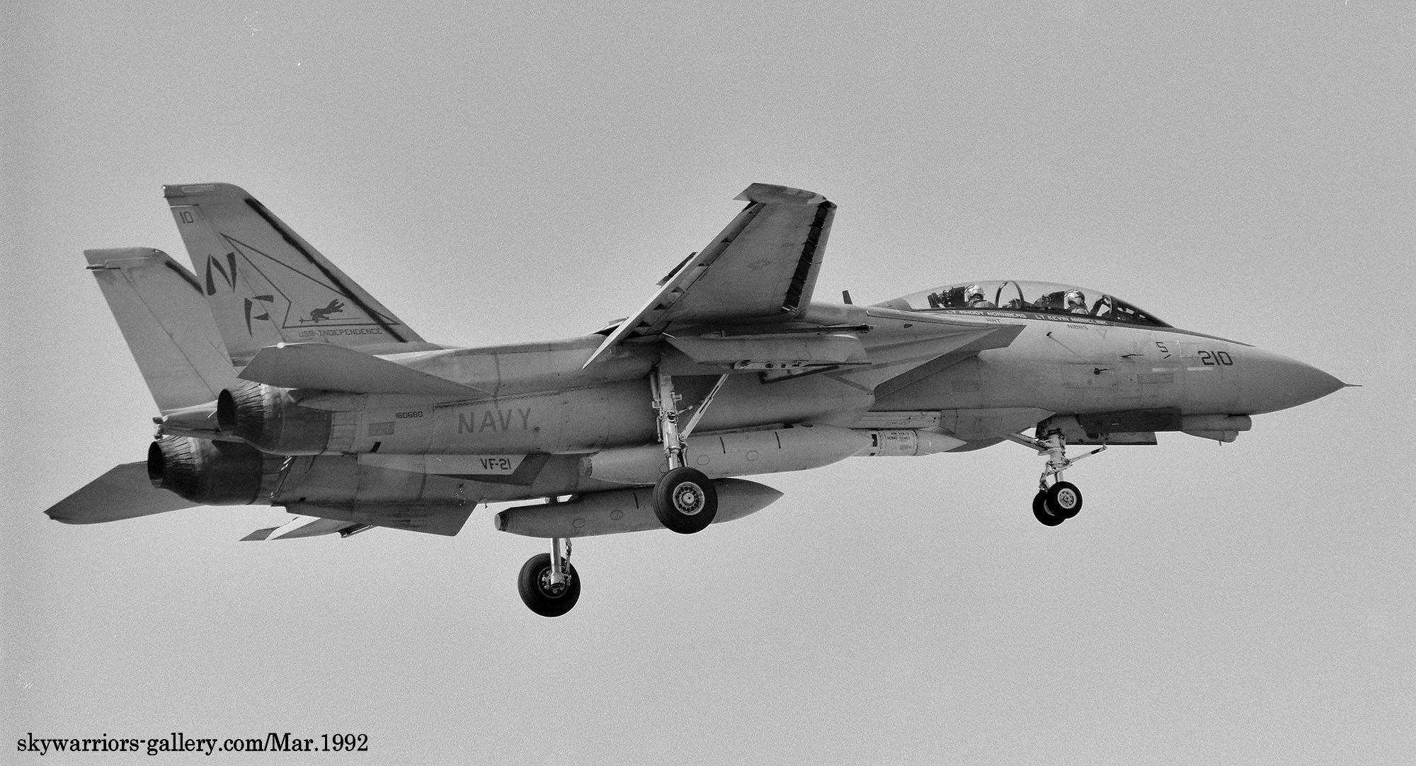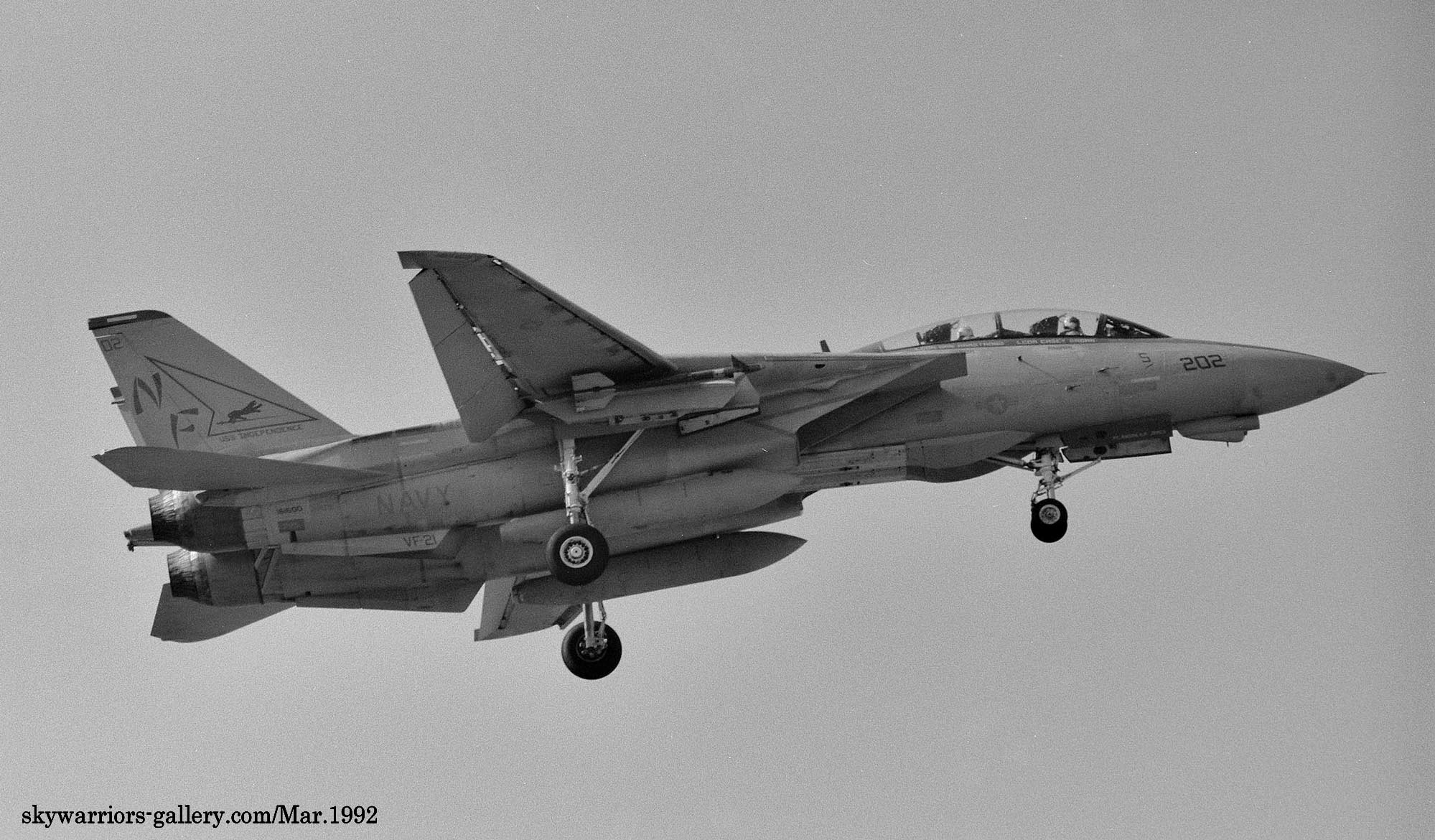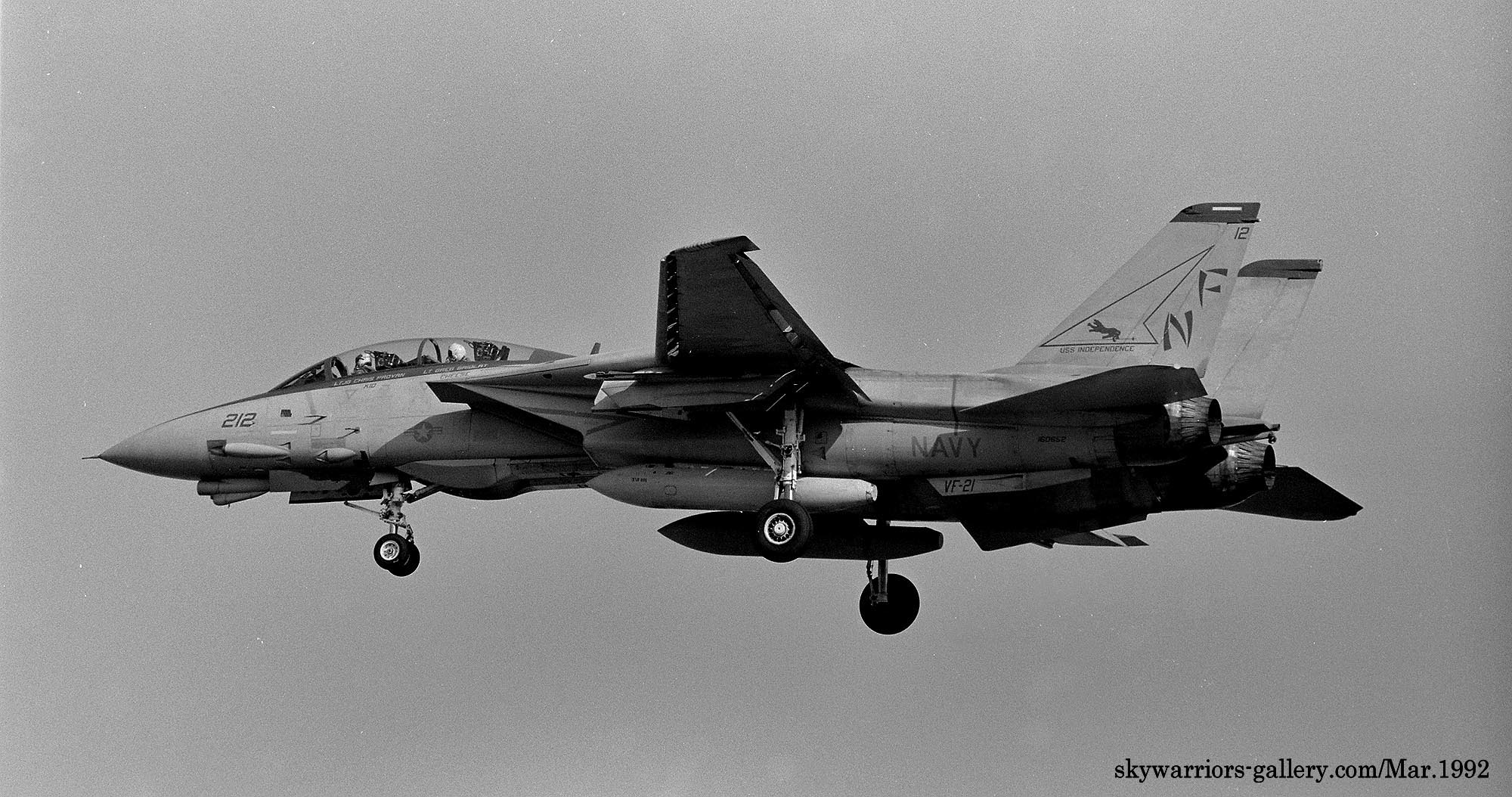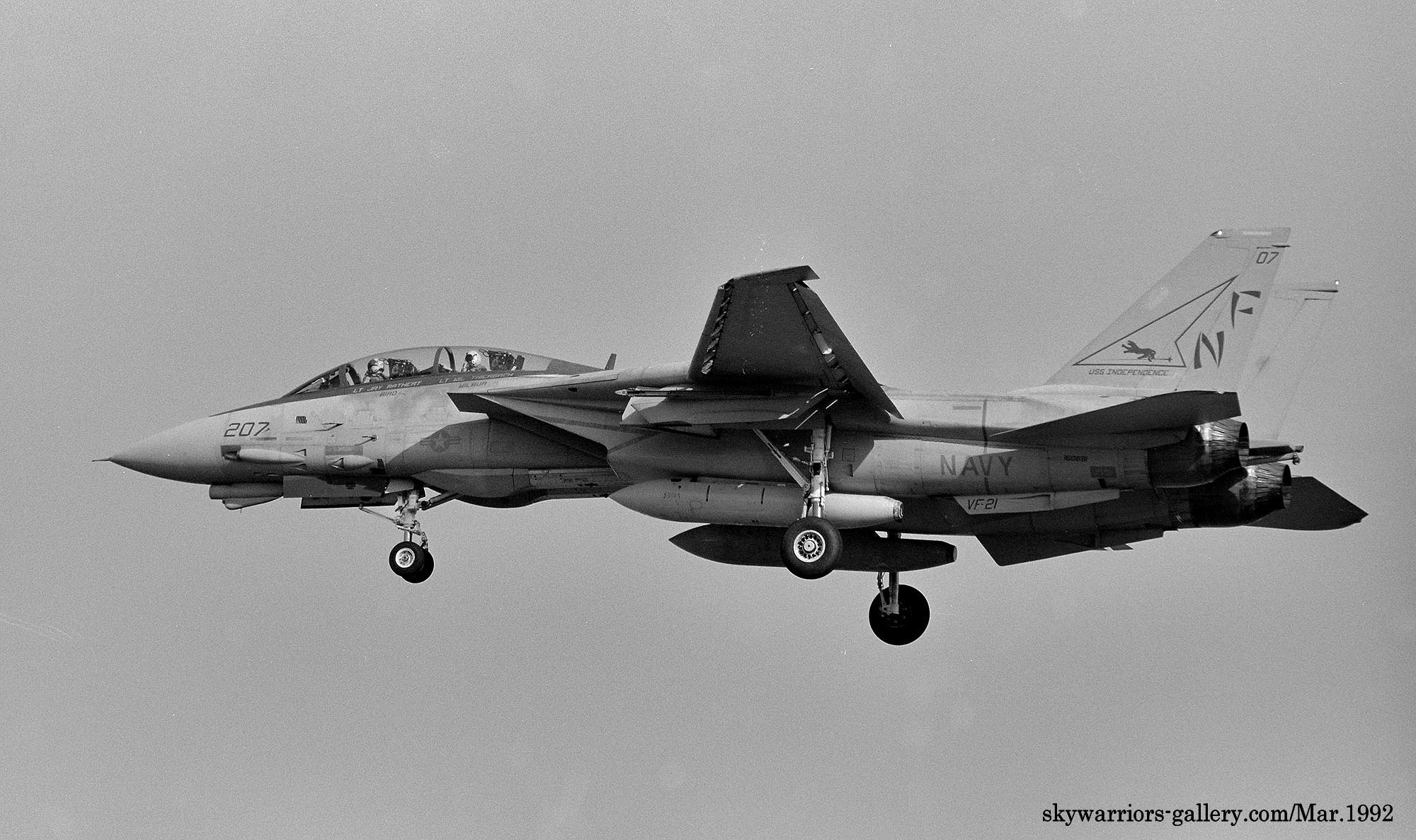↑ 1992年4月厚木基地の航空祭"Wing-92"でデモフライトした最初のF-14A 3機の内、2機はVF-21所属だった。