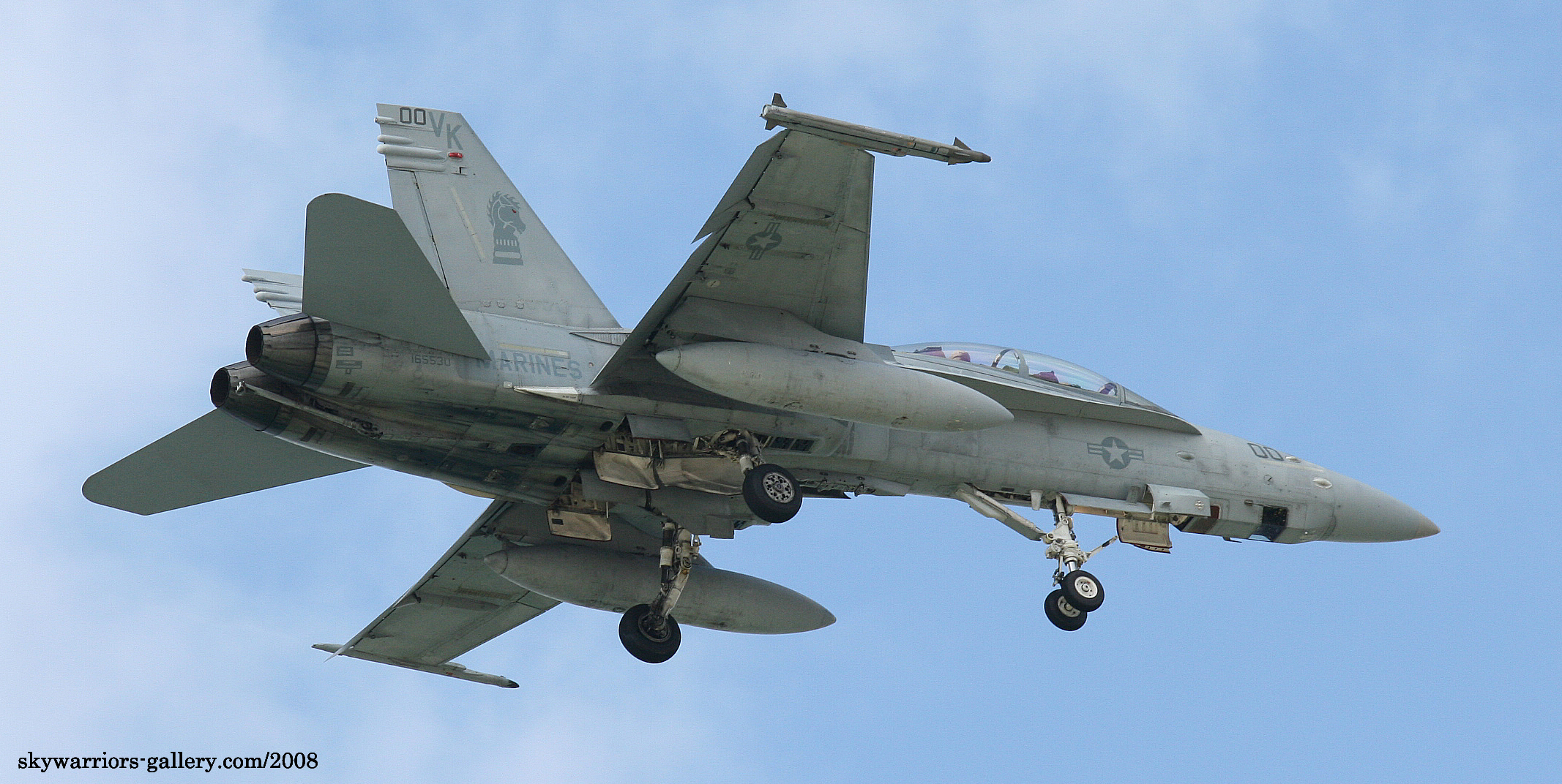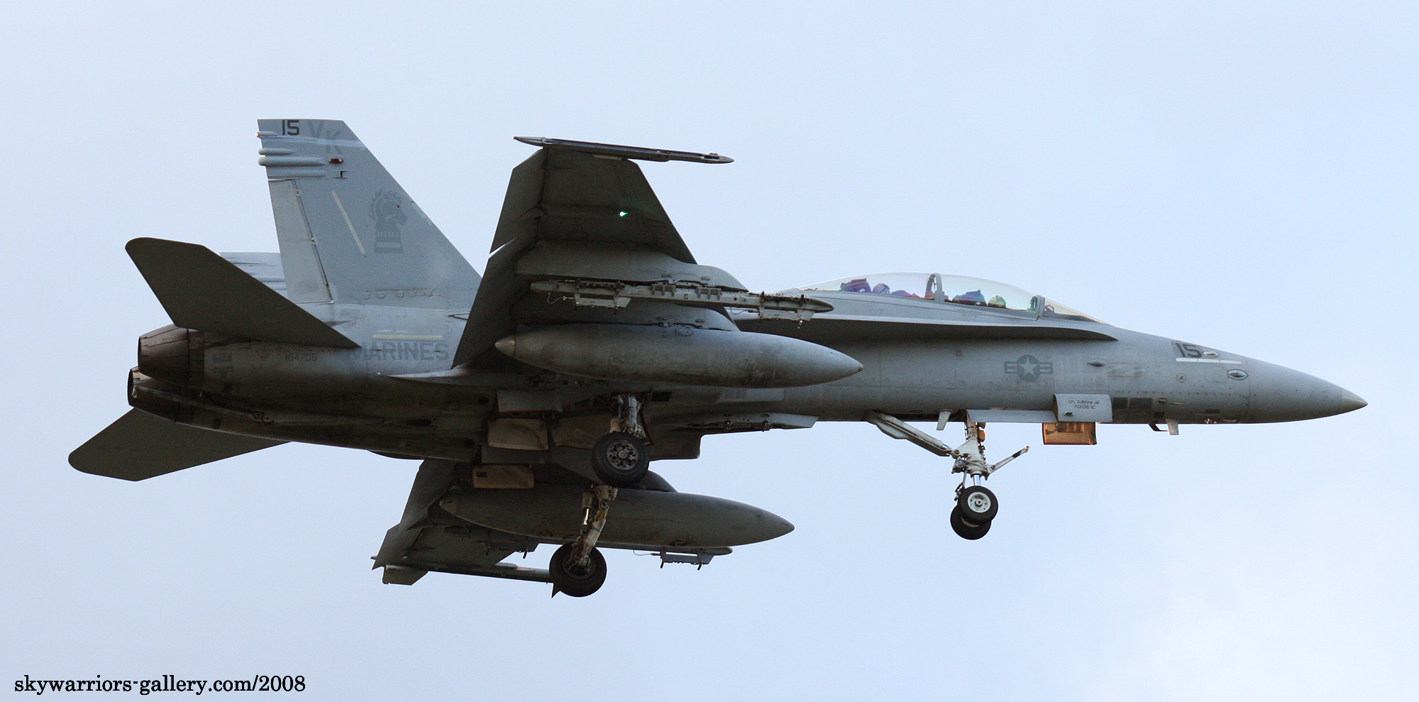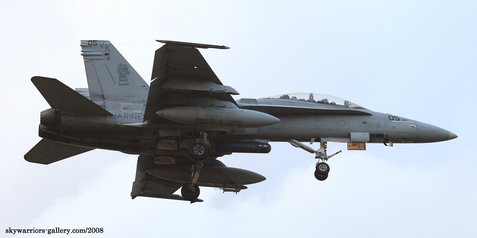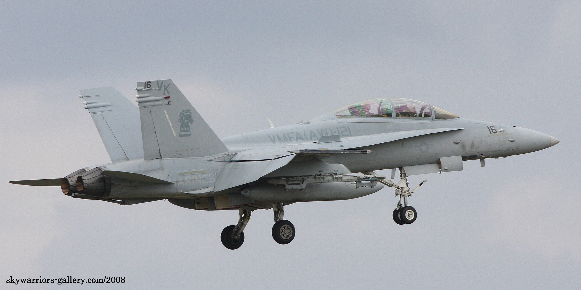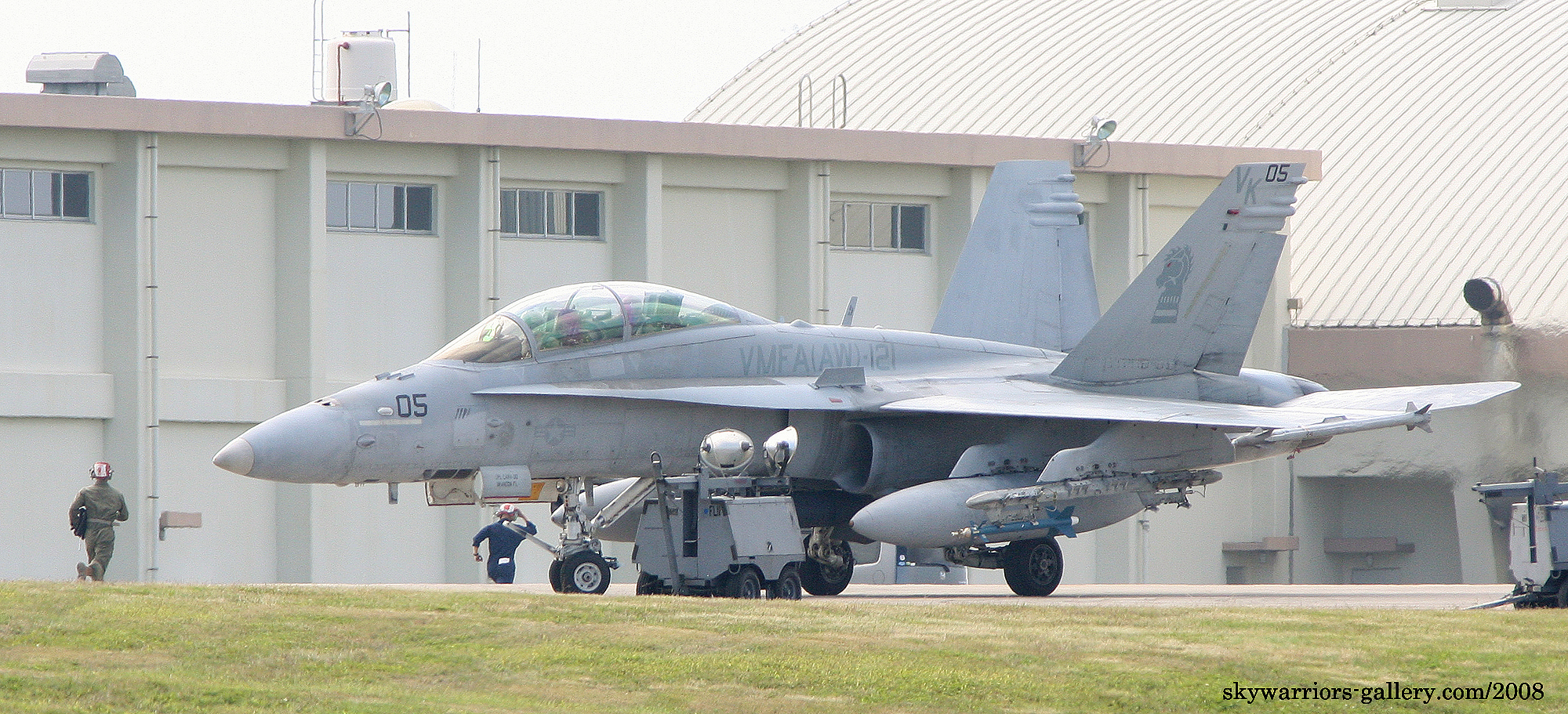 ここから先は、2008年12月15日~16日に私の嘉手納基地撮影行で久々に撮影したVMFA(AW)-121の機体を幾つかご紹介しょう。残念ながらVK-01のカラーリングされた機体は、この両日は機体故障の為飛行していない。訓練は、12月15日の週からVFA-94に変わってVMFA(AW)-121が約8機飛来し、小型の訓練爆弾(通称 茄子)を付けて訓練をしていた。(2009/1/2 記)