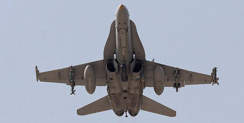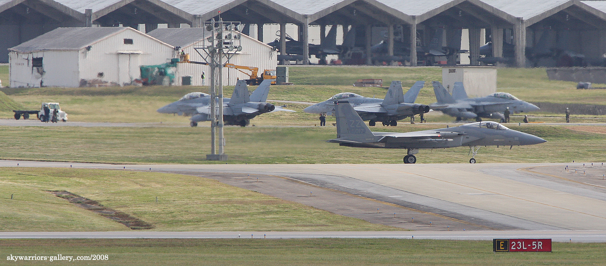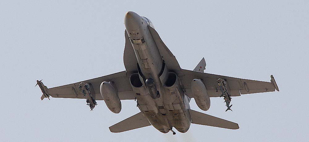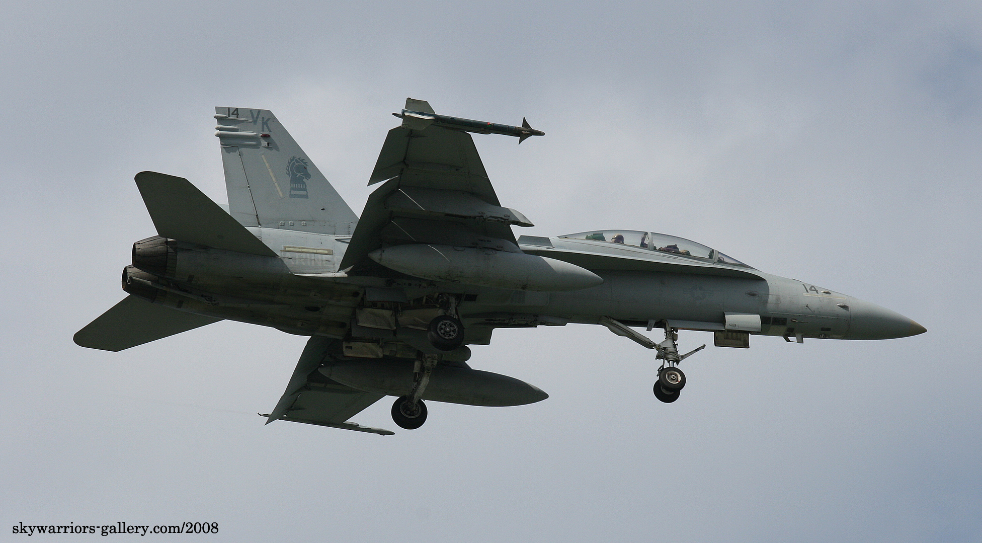 面白いのは、ほぼ同時に上がった2機のFA-18Dだが、兵装の内容は全く同じで付け方が左右対象になってます。なんででしょう。2008年12月16日 11:15