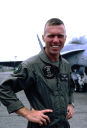 ↑ 2004年ミラマーの展示機としてデビューした最初のブラックテール機。Modex,パイロット名 部隊名などもスコードロンカラーのグリーンで統一し、一部は、黒のシャドーが入っている。ジェットインテークの注意書きとビューアルナンバーもはっきりとした黒色が使われており、この司令官指定機以外が完璧なロービジ塗装であったことから、非常に目立つ存在だったはずだ。F/A-18D