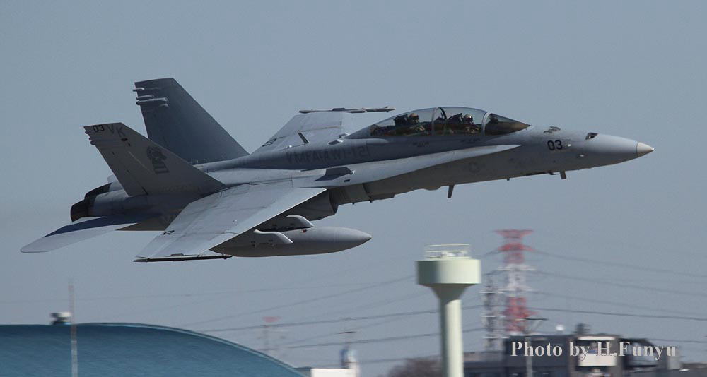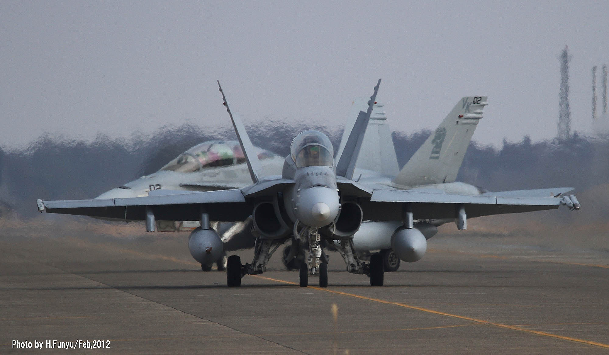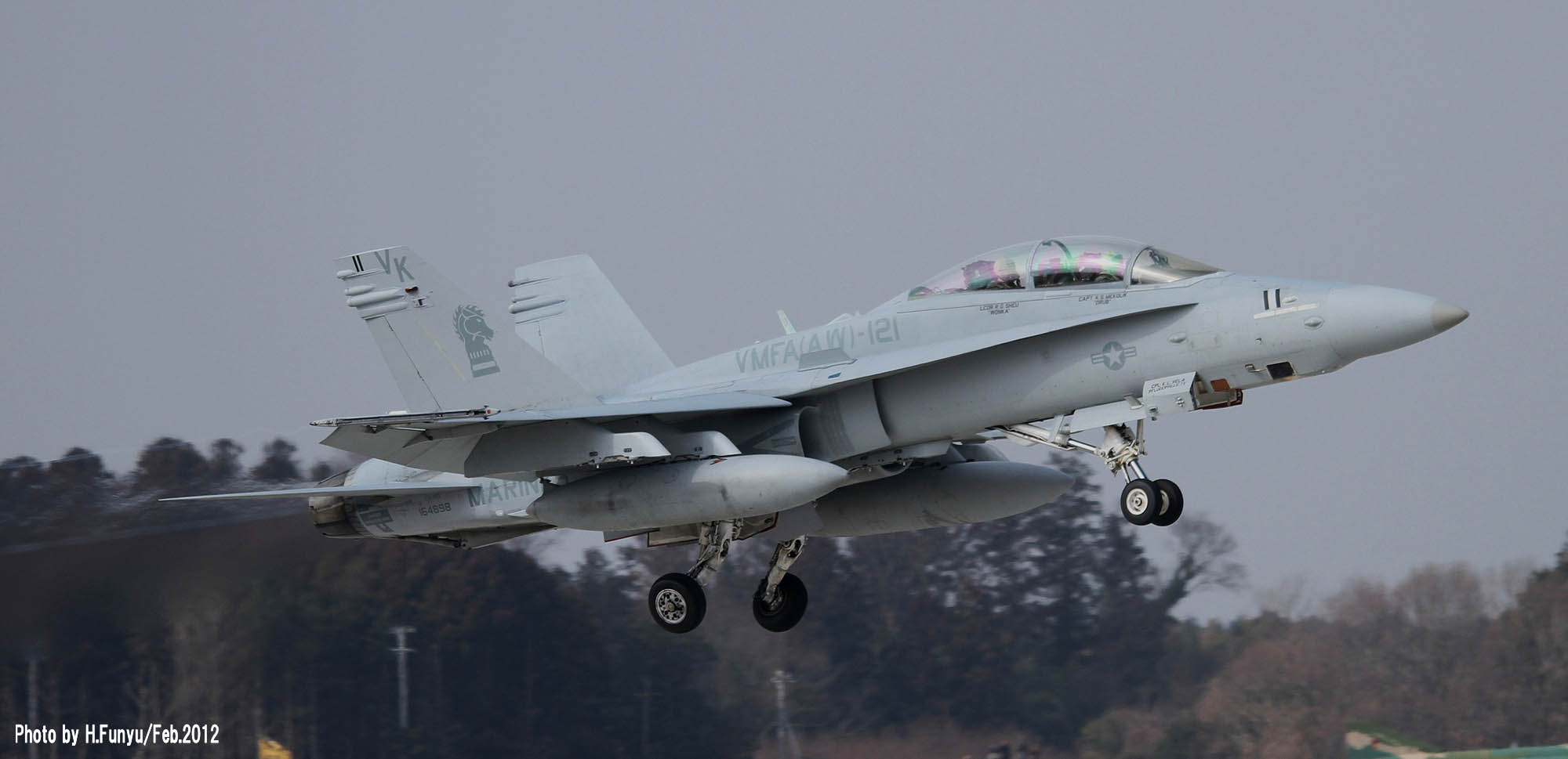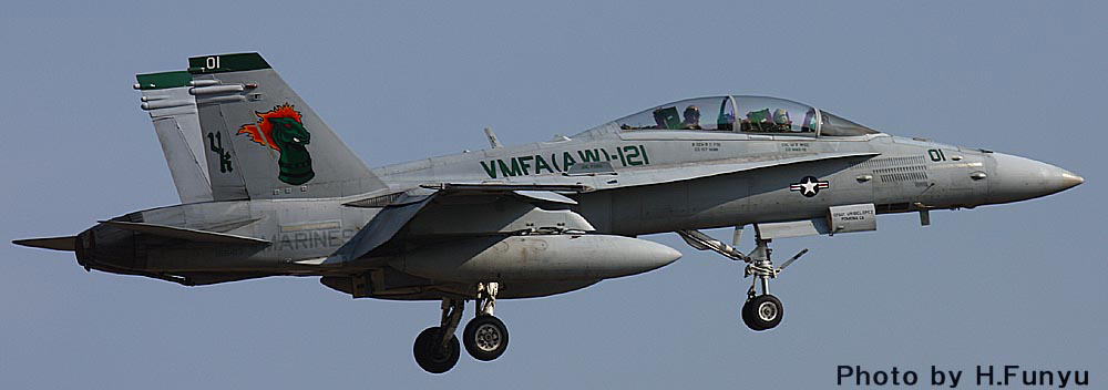 嘉手納基地で残念ながら撮り逃がしたVK-01「燃えるタテガミのグリーンナイツ」であるが、年を明けた2009年 フニュフニュ君からの連絡で「厚木・横田にイモのように来ているよ・・」との連絡が入った。その後 写真を送っていただいたが、何と降り・タキンシング・離陸と3点セットでパーフェクトに押さえているではないの・・ぐやじい・・・普段マリーンにはあまり恵まれない厚木基地もVMFA(AW)-121については、2009年の1-2月はふんだんに撮れたそうである。