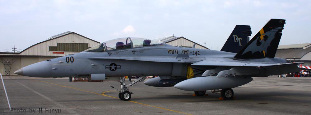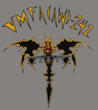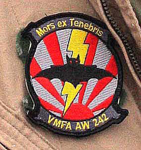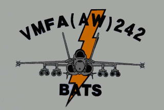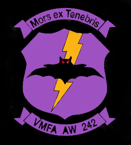VMFA(AW)-242も歴史が古く 創設は1943年7月に遡る。海兵隊最初の全天候飛行隊としてTBFベンジャー雷撃機を配備されエル・セントロ基地で教育訓練を受けた上で 太平洋戦争に参加している。太平洋戦争では、ニューギニア戦線からサイパン島・テニアン島といった日本軍守備隊が守る孤島の攻略、最後には硫黄島攻防戦に参加しているので、日本と関連の深い飛行隊だ。