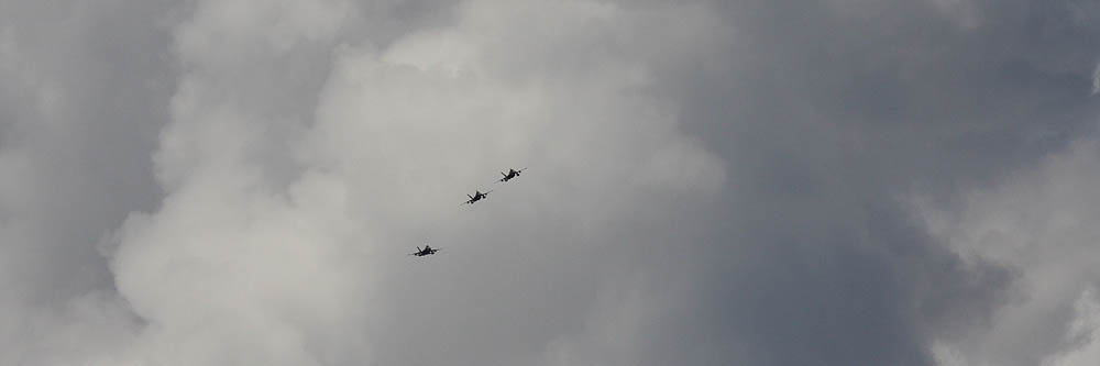 湿度が高い日は、ミサイルを付けていないステーションだけの翼端からは、ベイパーが流れる。やはり ミサイルを装着している方が気流に対して抵抗が少ないのであろう。