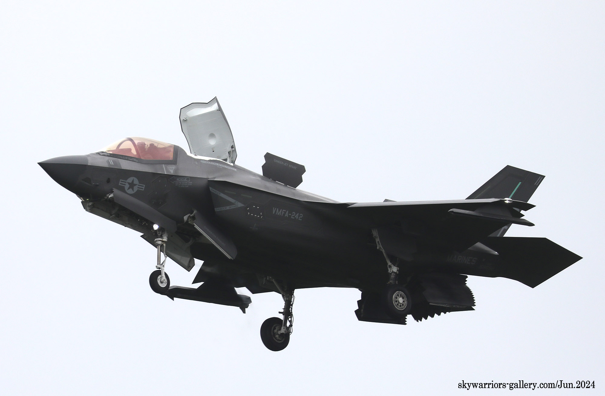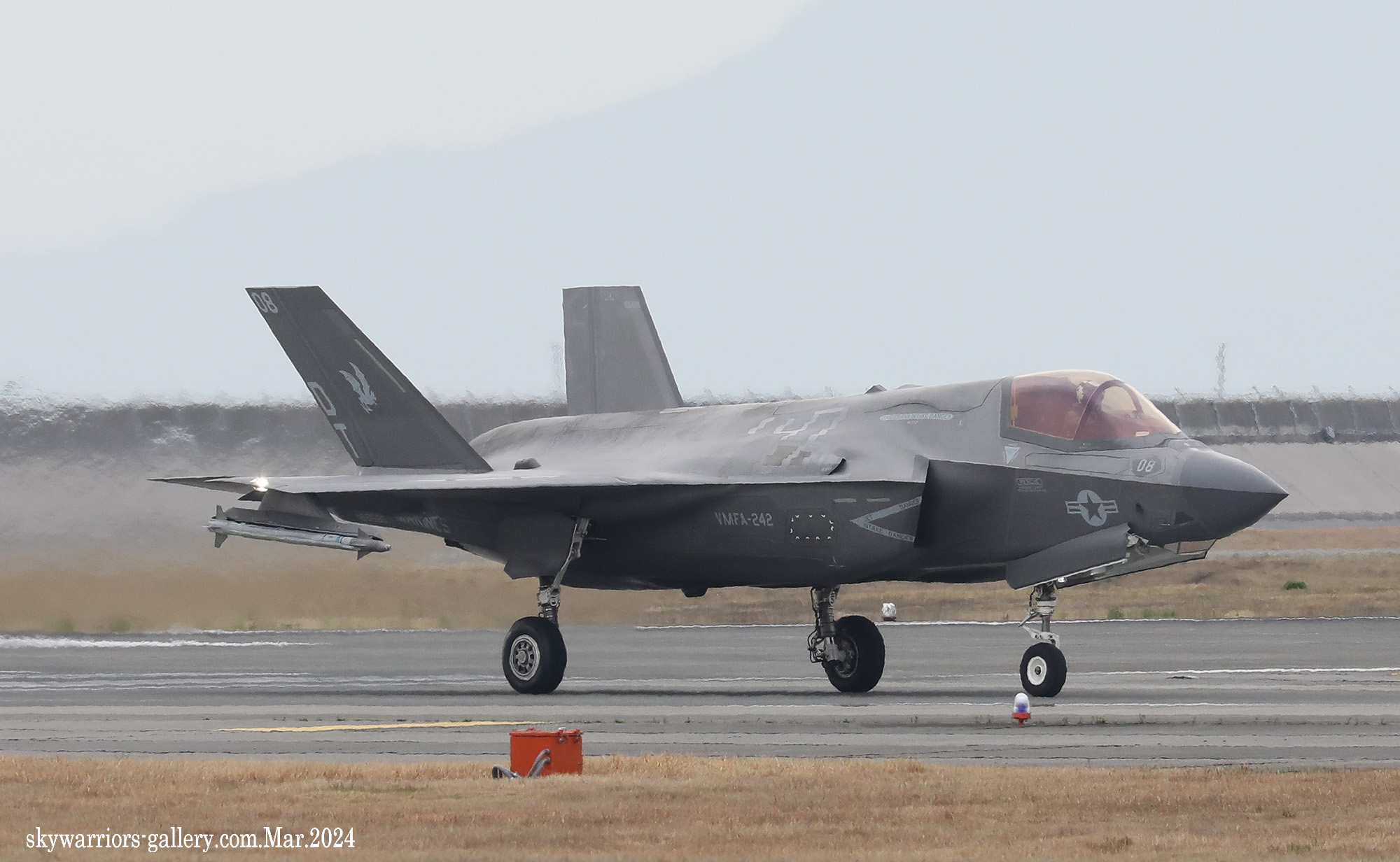 ↑ 上の4枚の写真は2024年3月28日 岩国基地で飛行訓練するVMFA-242のF-35B。既に翼下に空対空ミサイルを外装するプチ・ビーストモードが一般的になりつつある。