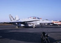 ↑ 1998年に愛知県小牧基地で展示されたBM401.恐らく部隊の中で当時唯一の派手なカラーマーキングを施された機体で 他の機体は、薄いグレー色で塗り込められていた。尾翼のホークも、この機体は大きく書かれている。尾翼の内側には本来のテールレター“ED”が入り、外側は“BM401”と書かれている珍しい形態。F/A-18D Bu.No.164866