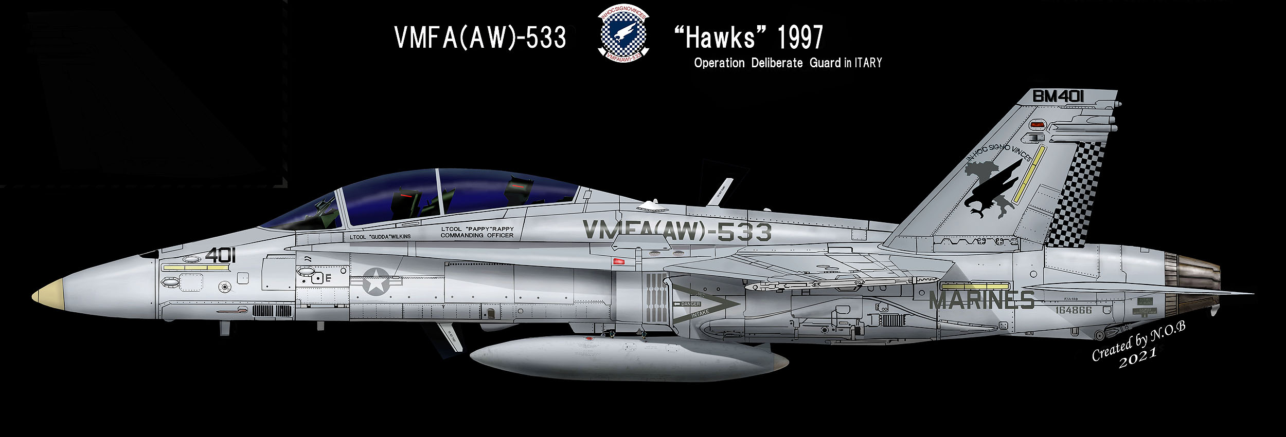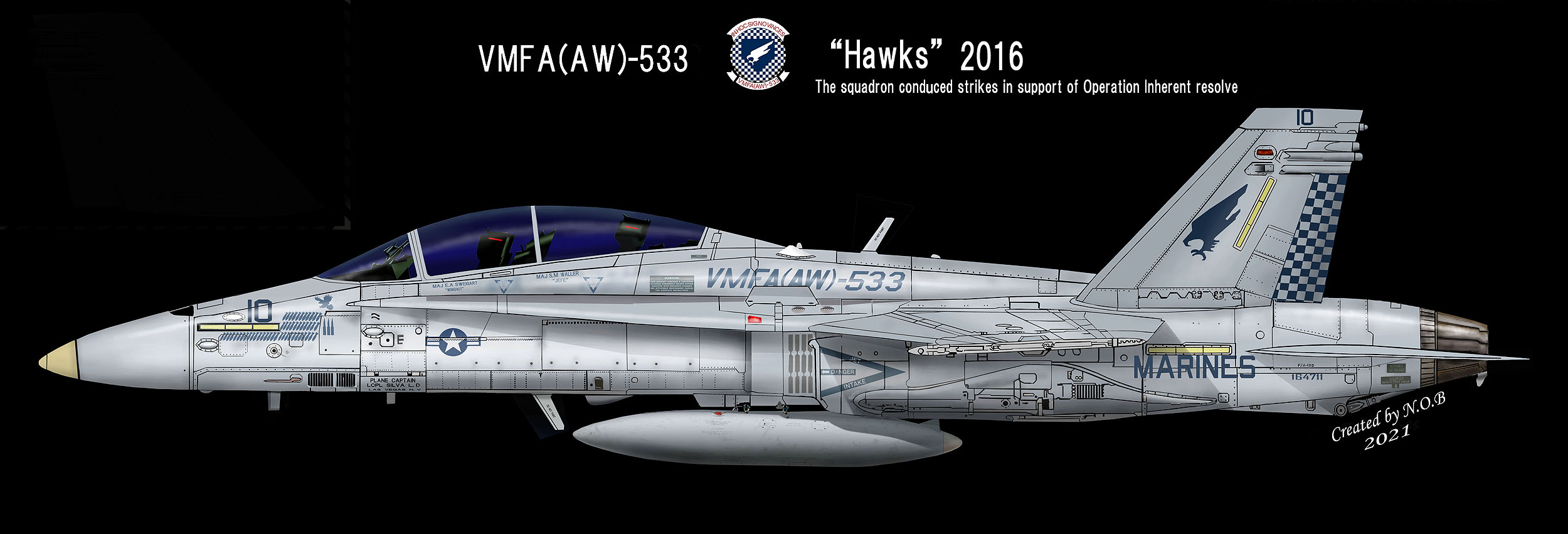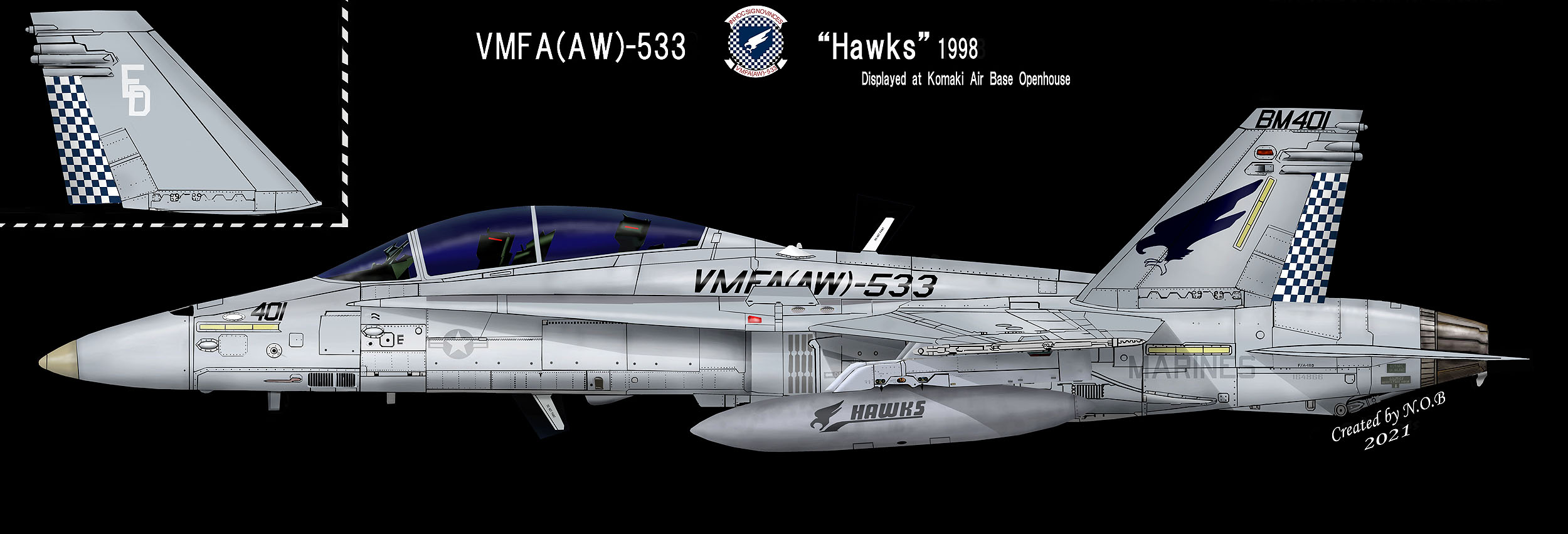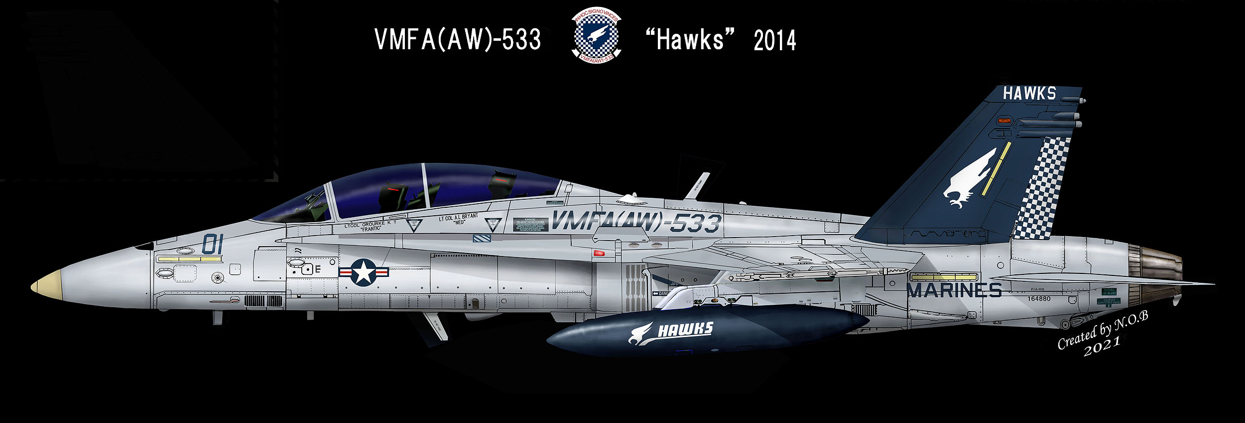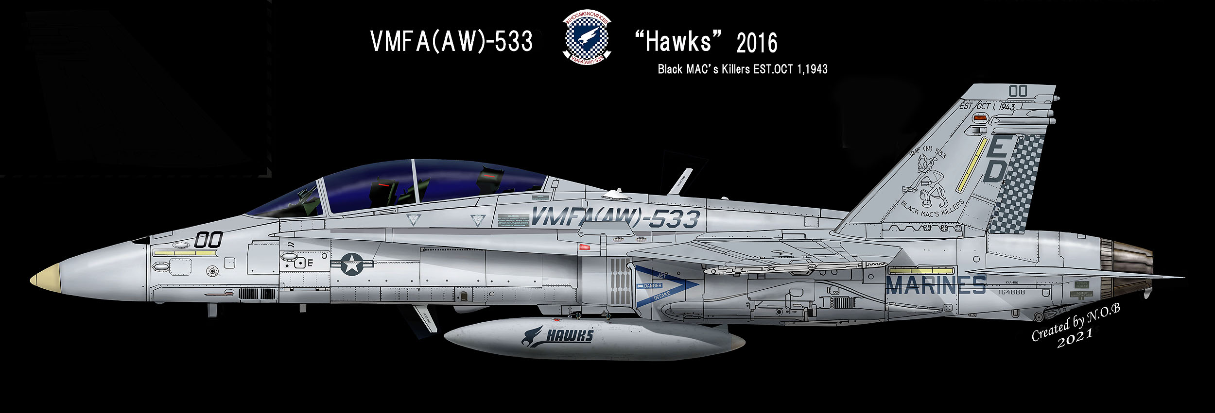 VMFA(AW)-533のコマンダー指定機ED-01のマーキングは殆ど大きな変化が無いが、下記の塗装は2004年当時のものを再現したもの。2008年当時も大きな変更は無かった。このマーキングが最もこの部隊らしい。