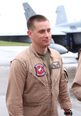 ↑ 2016年中東に派遣され、恐らくテロ集団と指定されたISILイスラム国集団などを対象にシリアやイラクで攻撃を繰り返した際の投弾マークが入った機体である。比較的長い期間このマーキングは消されずに残り2018年の岩国公開時もED-11が投弾マーク付きで展示されている。イラストは、50個の投弾マークと小さな鷹が書かれたED-10でF/A-18D Bu.No.164711