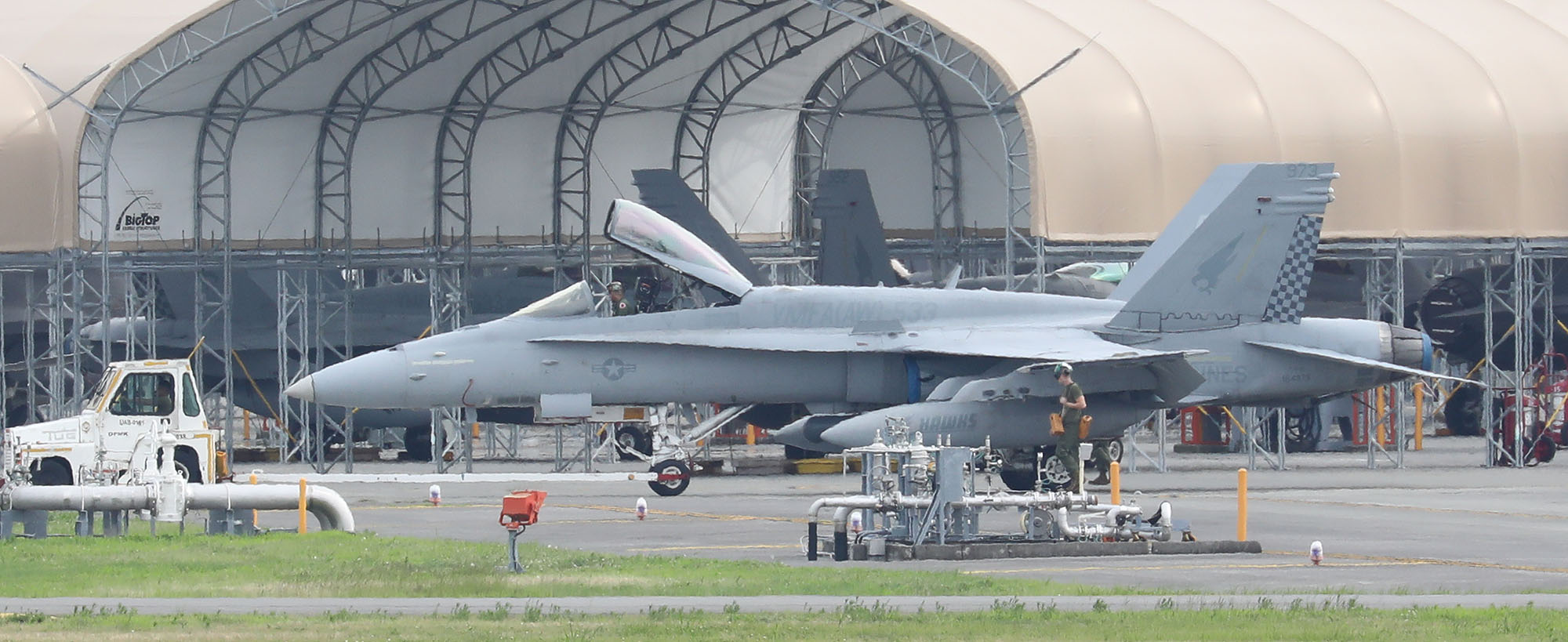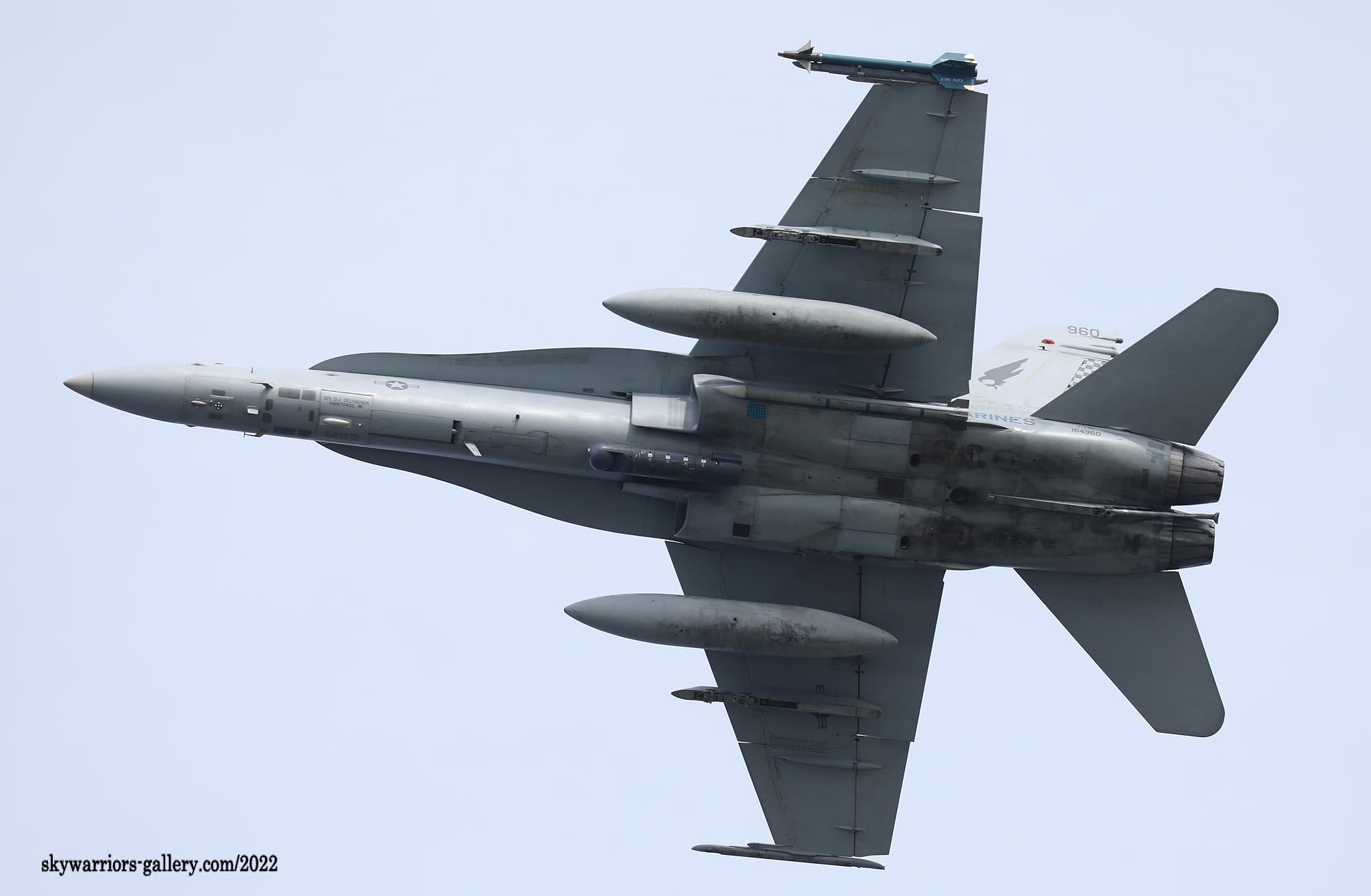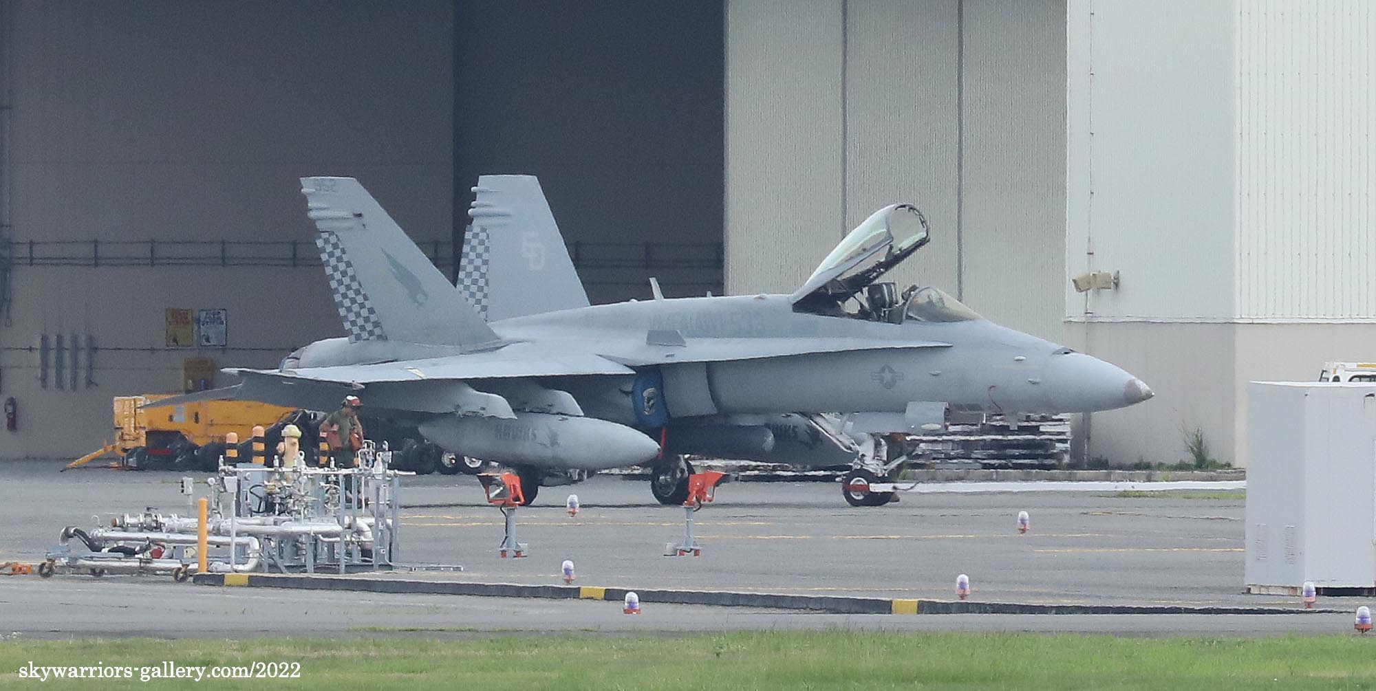 2022年7月12日 離陸するFA-18C/Bu.No.164891は、タンクにだけ部隊マークが入ったノーマーク機。