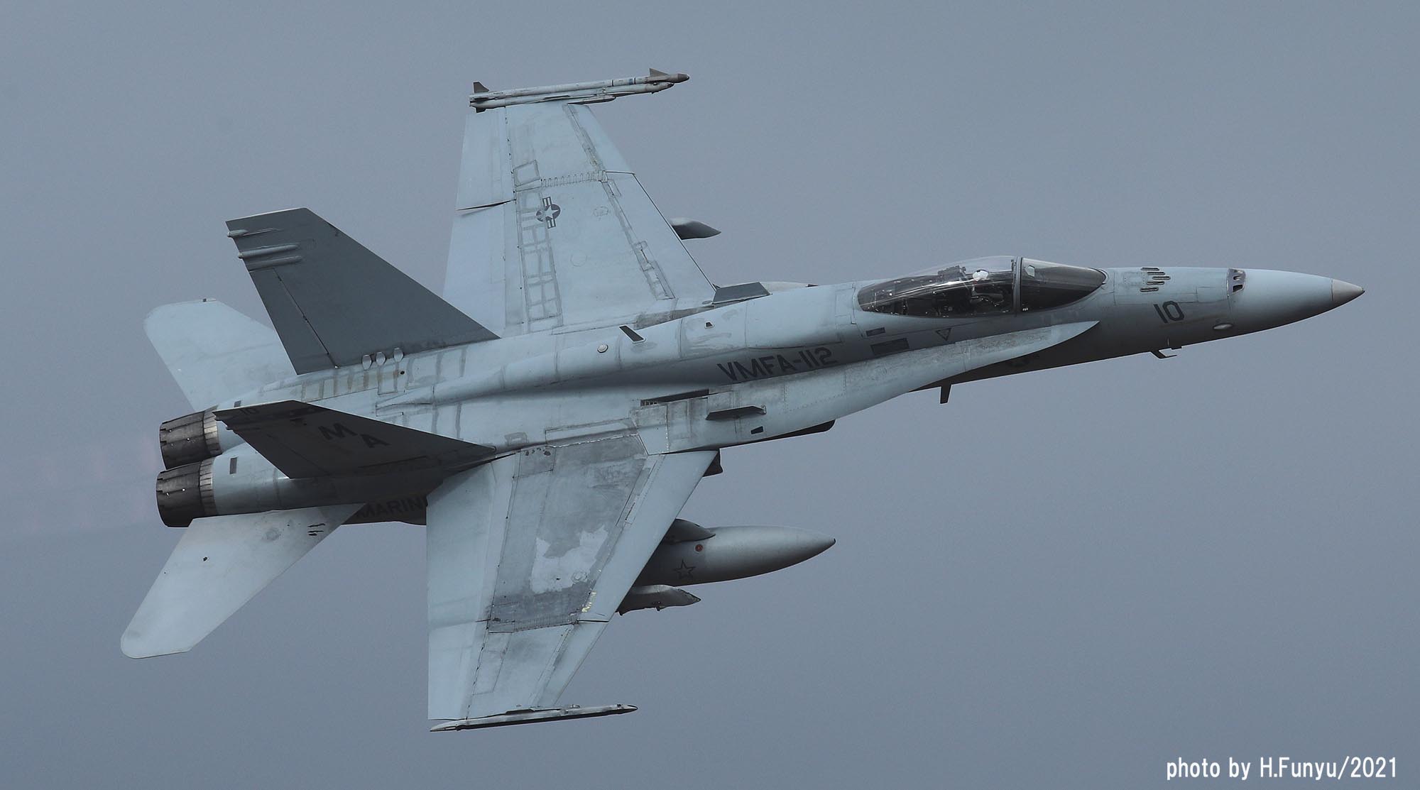 2021年秋、岩国に飛来したカーボーイズの一群は、岩国だけでなく横田、嘉手納にも少数機が展開し、マリンコファンを喜ばした。12月に入りなんと百里でF-2Aと共同訓練をすると言う情報が流れ、多くの航空ファンが12月の寒空の中、百里に向かったのだった。部隊は、訓練予定の前週12月8日に突然百里に飛来し、その翌日に突然ローカルフライトするなどファンの予想を超えた動きをしたが、訓練飛行が予定されていた12月13日から週は、月曜日からしっかりとミッションを消化してくれた。その模様をお届けしたい。本来、テキサス州フォートワースまで行かねば撮れない被写体だけに、このチャンスを逃すまいと記録的な人数の航空ファンが百里に集まったのだが、それに答えるように各機はべたべたの低空離陸とブレークを行い背中バックシのシャッターチャンスもファンたちに提供してくれた。