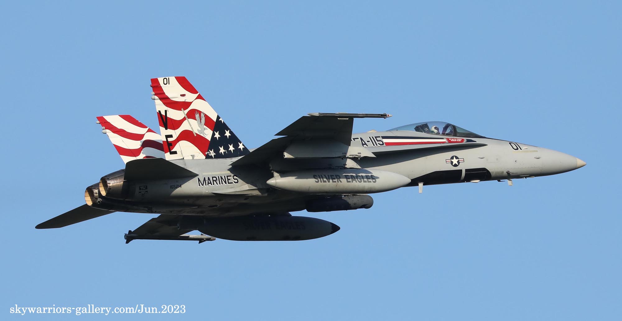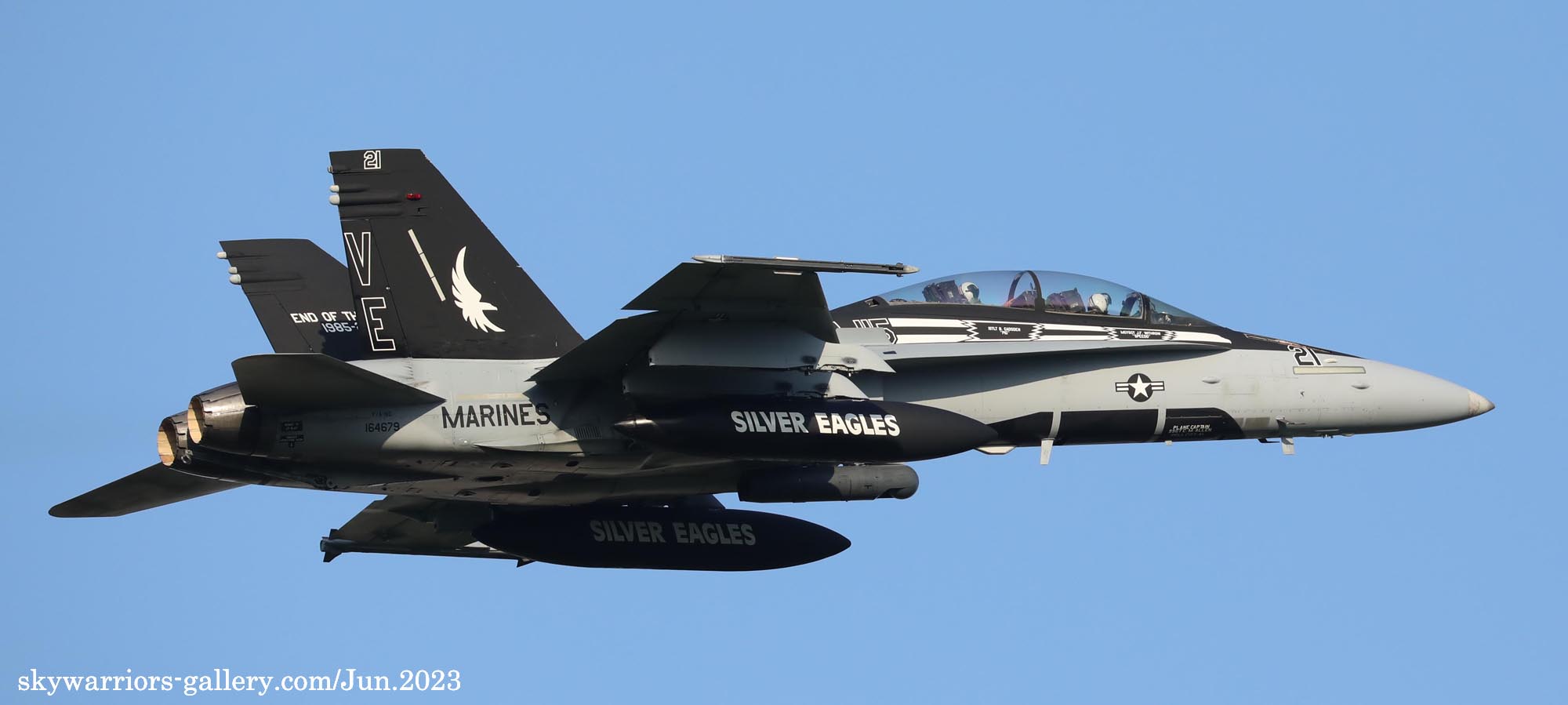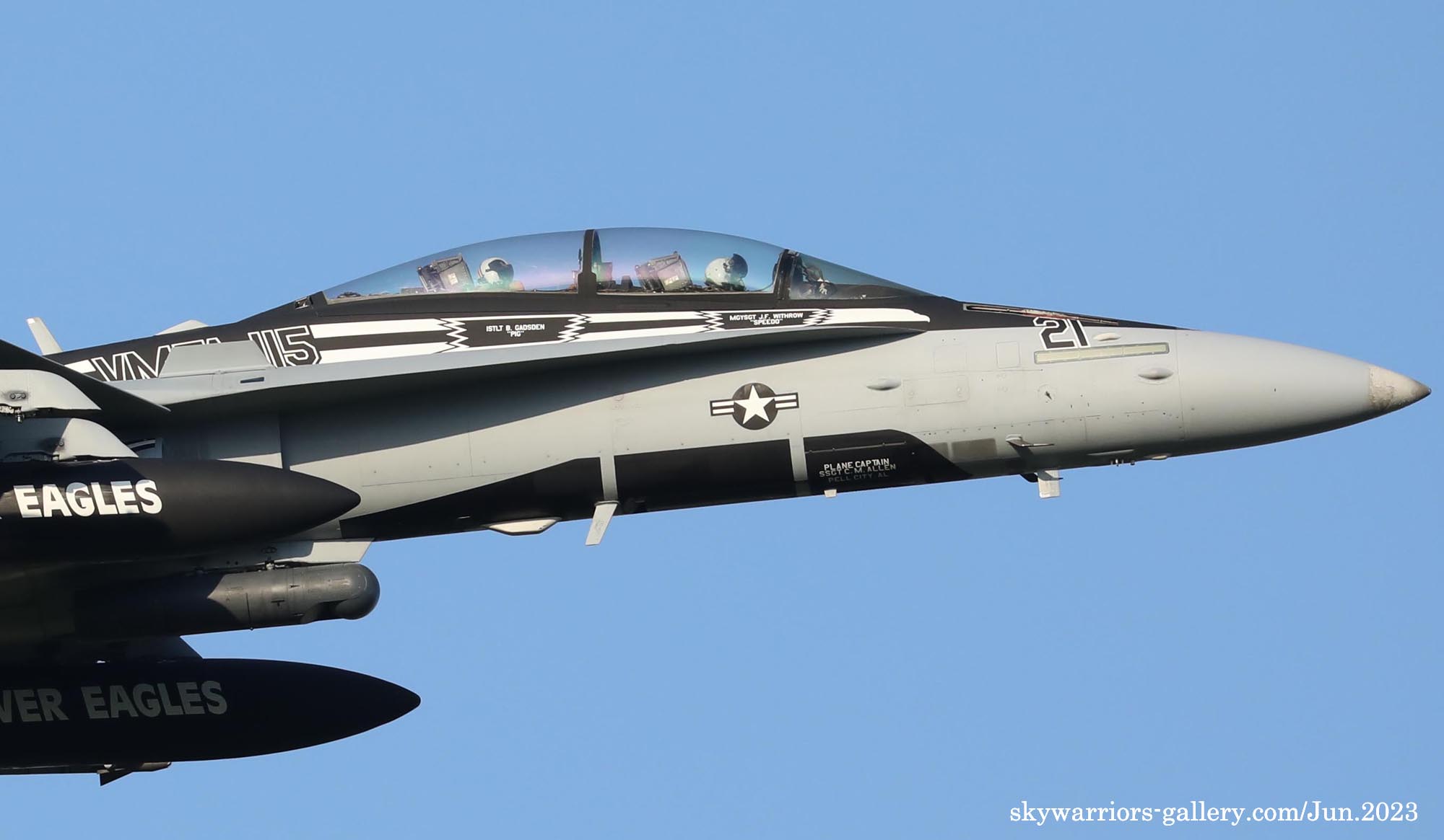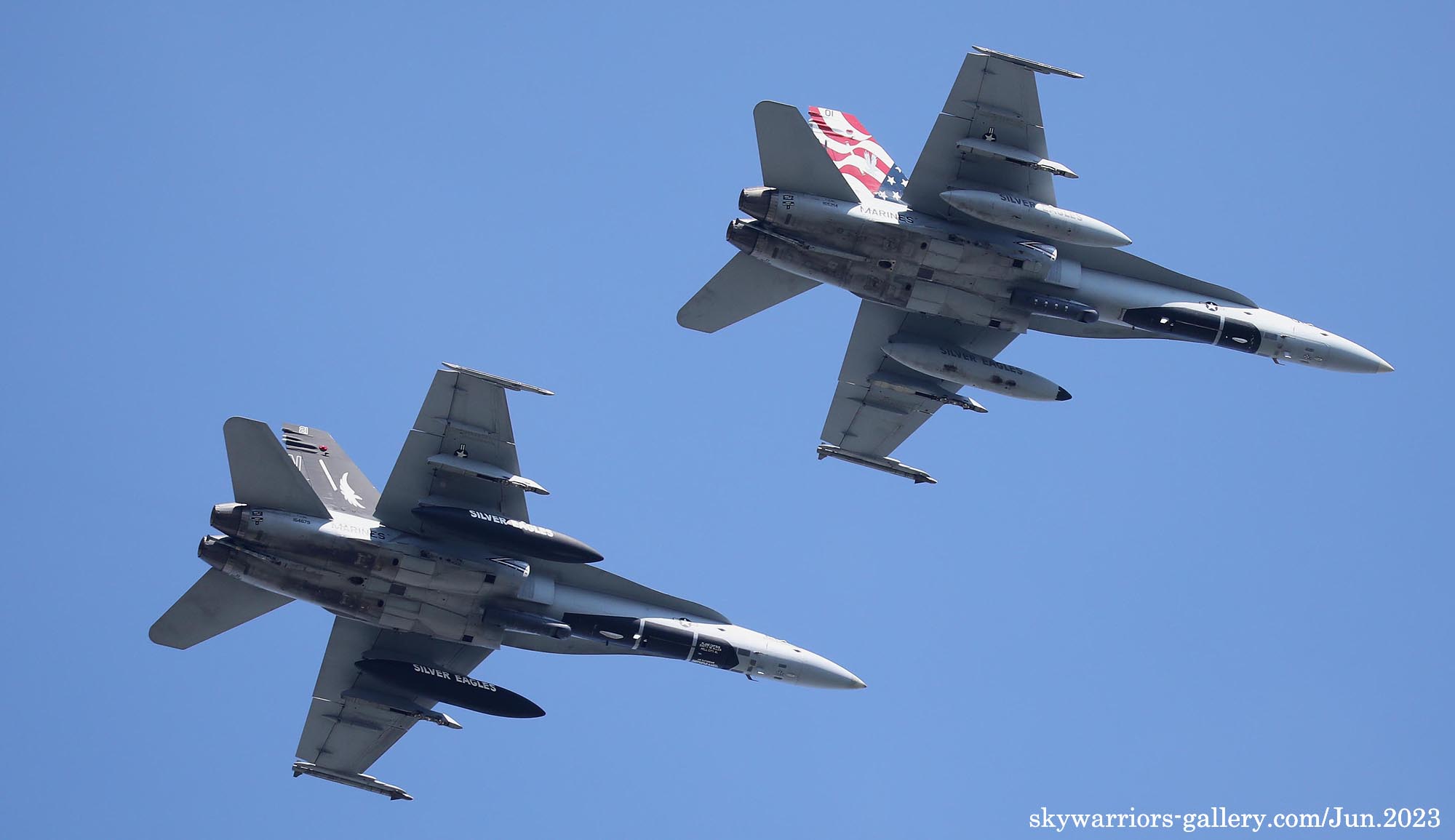 2023年6月15日 海軍厚木基地に再びVMFA-115のFA-18C/D 4機が飛来した。内2機は、VE-01とBlack-Bettyと呼ばれるVE-21である。Black-Bettyは岩国基地祭で撮ってはいるものの、厚木でフライトが撮れるのはまた一味も二味も違う、午前中仕事だったが、午後は厚木に向かう事とした。昨日16日もローカルフライトを何度か行っており、フニュ君の見立てでは4月の飛来時と同じパターンで2度のローカルフライトをやって夕方岩国に帰るはずだと言う。私もそれを信じて期待を膨らませた。フニュ君の見立て通り、午前午後と2度のフライトをこなしてくれたので、光線の良いR/W19での午後の着陸に間に合った。当日の厚木は多くのマニアが集まって、賑やかな様相であった。最後はR/W19での4機の離陸を捉える為、電車と徒歩で反対側へ移動、小林先輩とも逢えて、再び昔話に花が咲いたのである。(2023年6月 記)