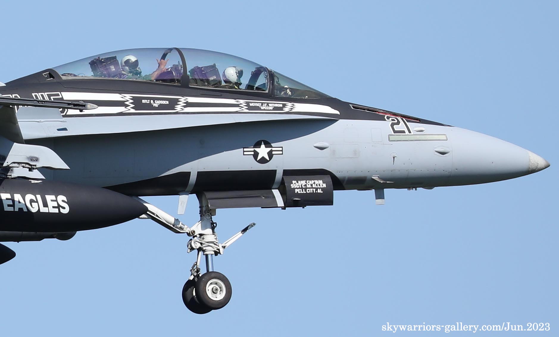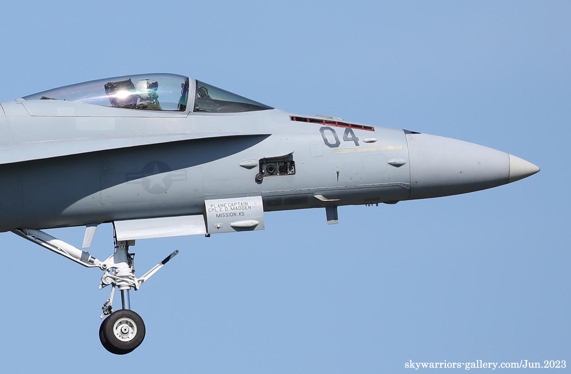 ↑ 日本に飛来しなかった2019年度版ショーバード(Bu.No.163174)と基本的に同じマーキングであるが、機体はF/A-18A++からF/A-18Cに変更されていたのが異なる点。C/S ブレード01は、同隊の伝統である疑似コックピットも忘れていなかった。Bu.No.165214