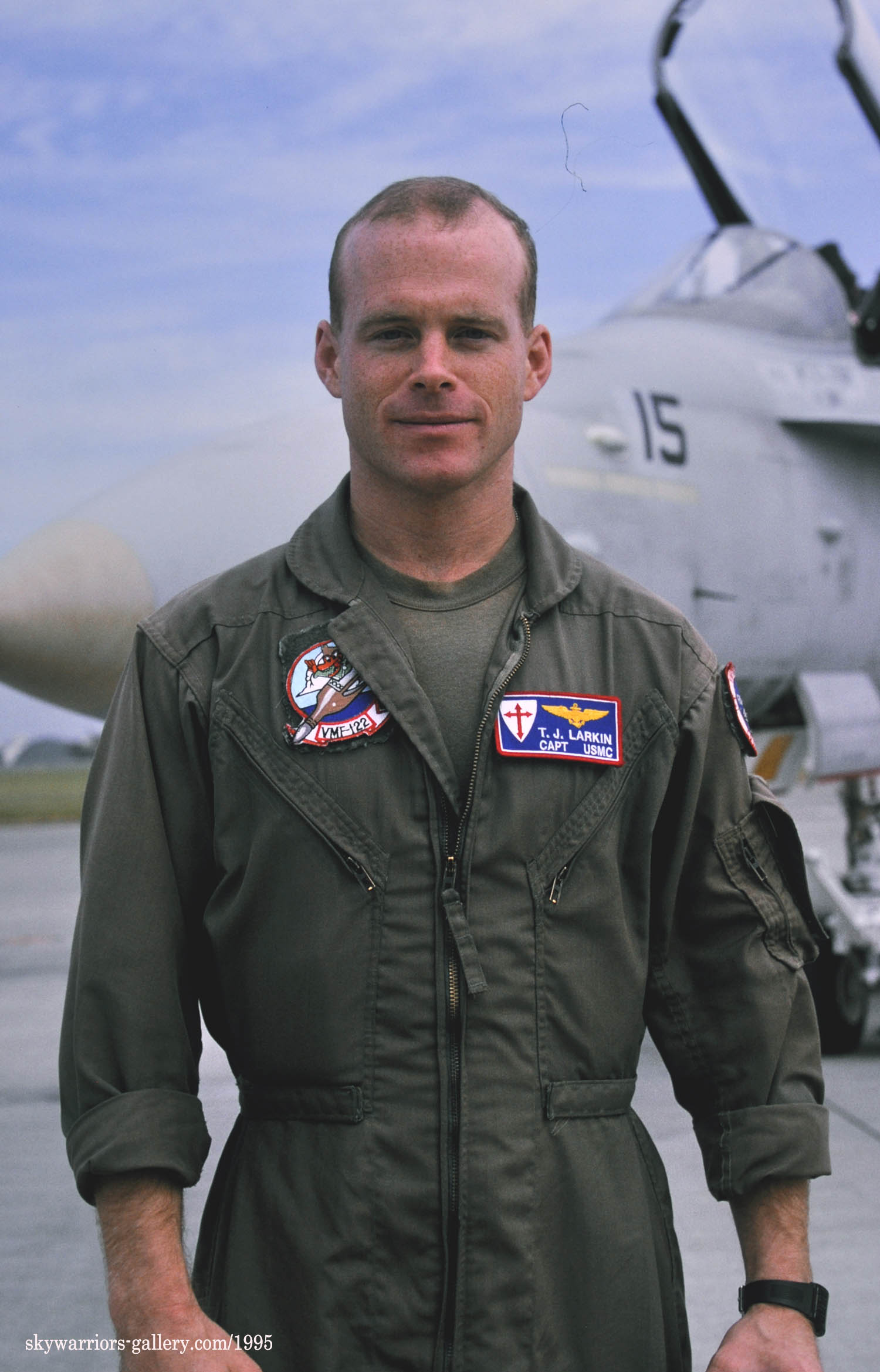 ↑ 2008年に元々の部隊名に由来する「狼たち」のコンセプトに基づきデザインを変更。狼は狼男に変身して尾翼に爪痕を残したマーキングが入った。DC01以外はこのデザインをロービジ調で統一したが、塗装変更の過渡期には、いくつかの異なる狼男が尾翼を飾っていた。VMFA-122 F/A-18C Bu.No.164264
