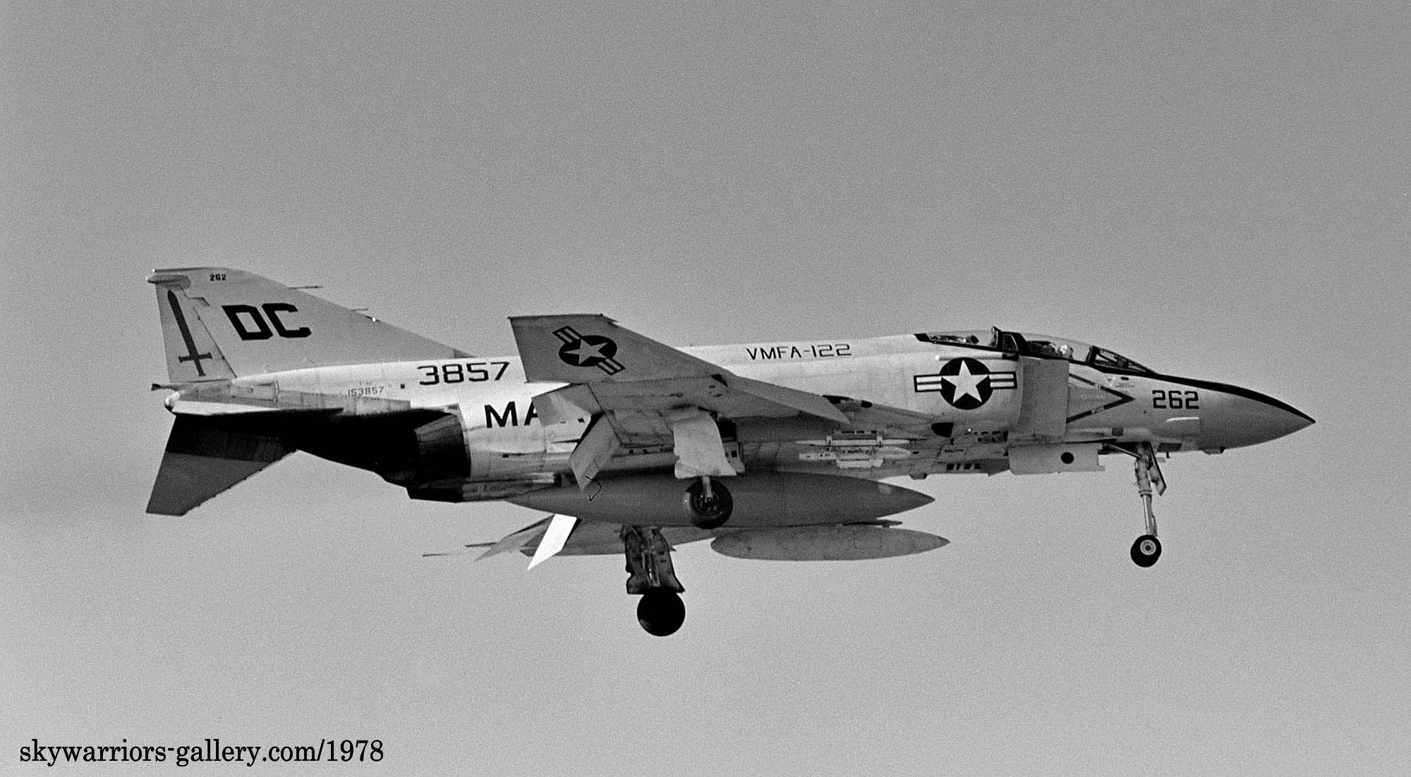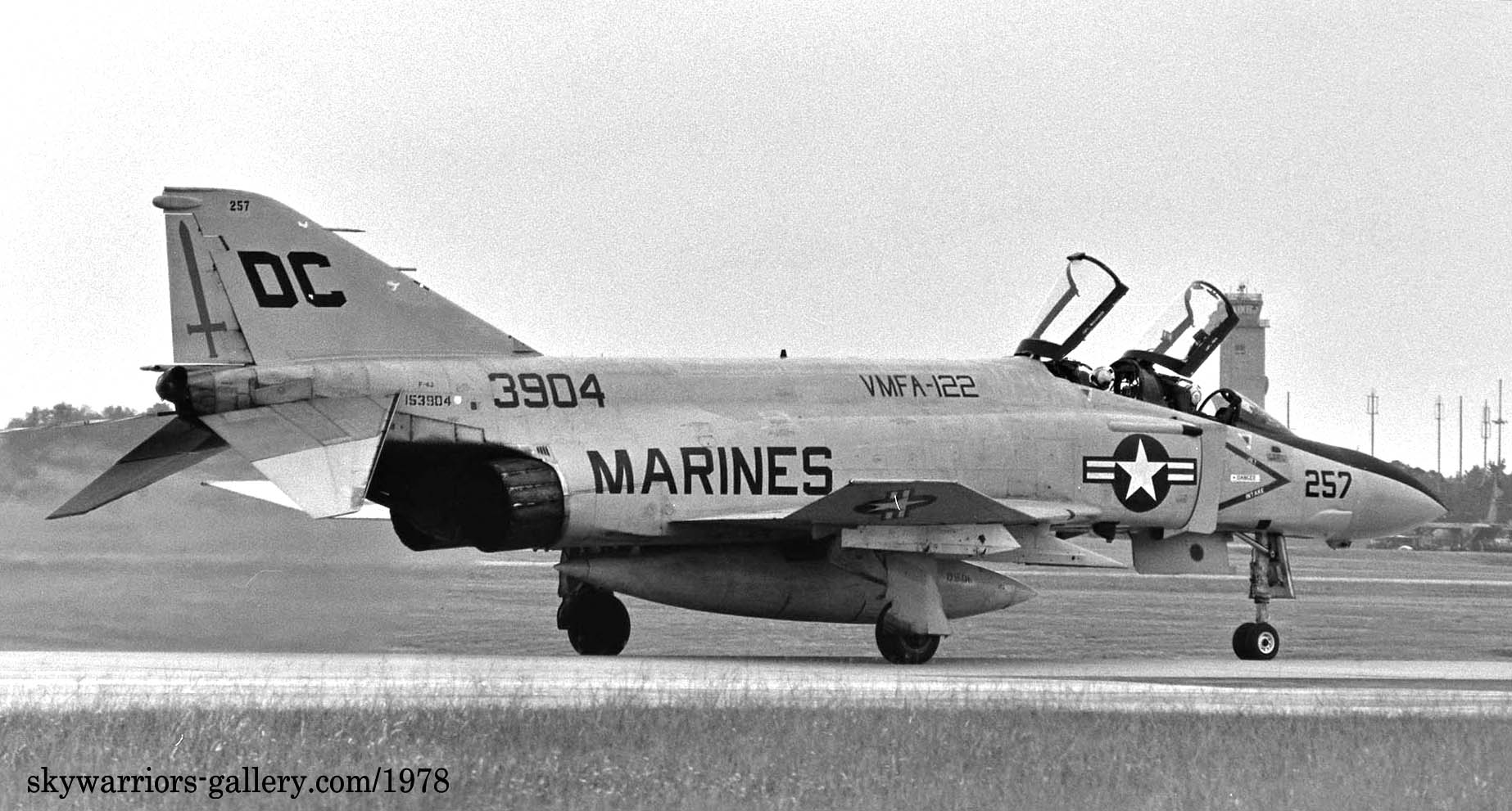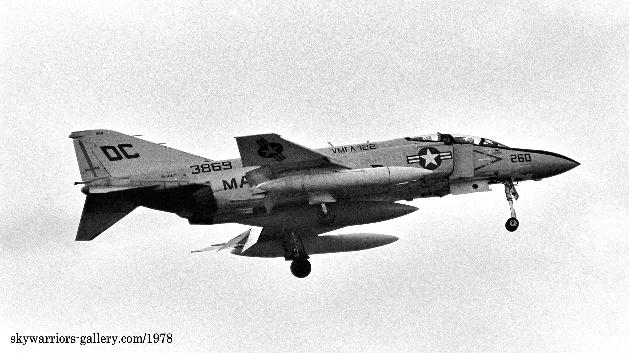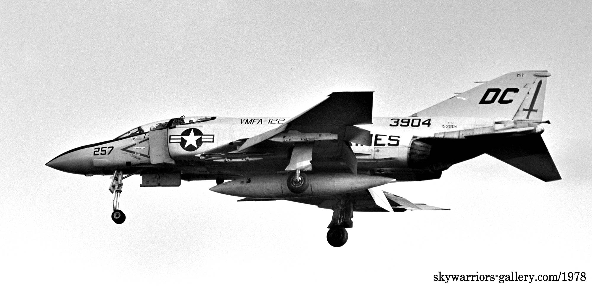 F-4Bを受領したのは1965年1月、この時VMA(AW)-122からVMFA-122に名称変更が行われた。ベトナム戦への参加は2度あり、1400回近い出撃記録を持つ。1975年12月にF-4Jを受領している。同じ1975年F-14トムキャッツへの転換飛行隊の候補とされたが、海兵隊そのものがコスト面で導入を諦めた為、テールレター ”DC”のF-14Aは実現しなかった。後にVMFA-122はF/A-18Aに更新された。
