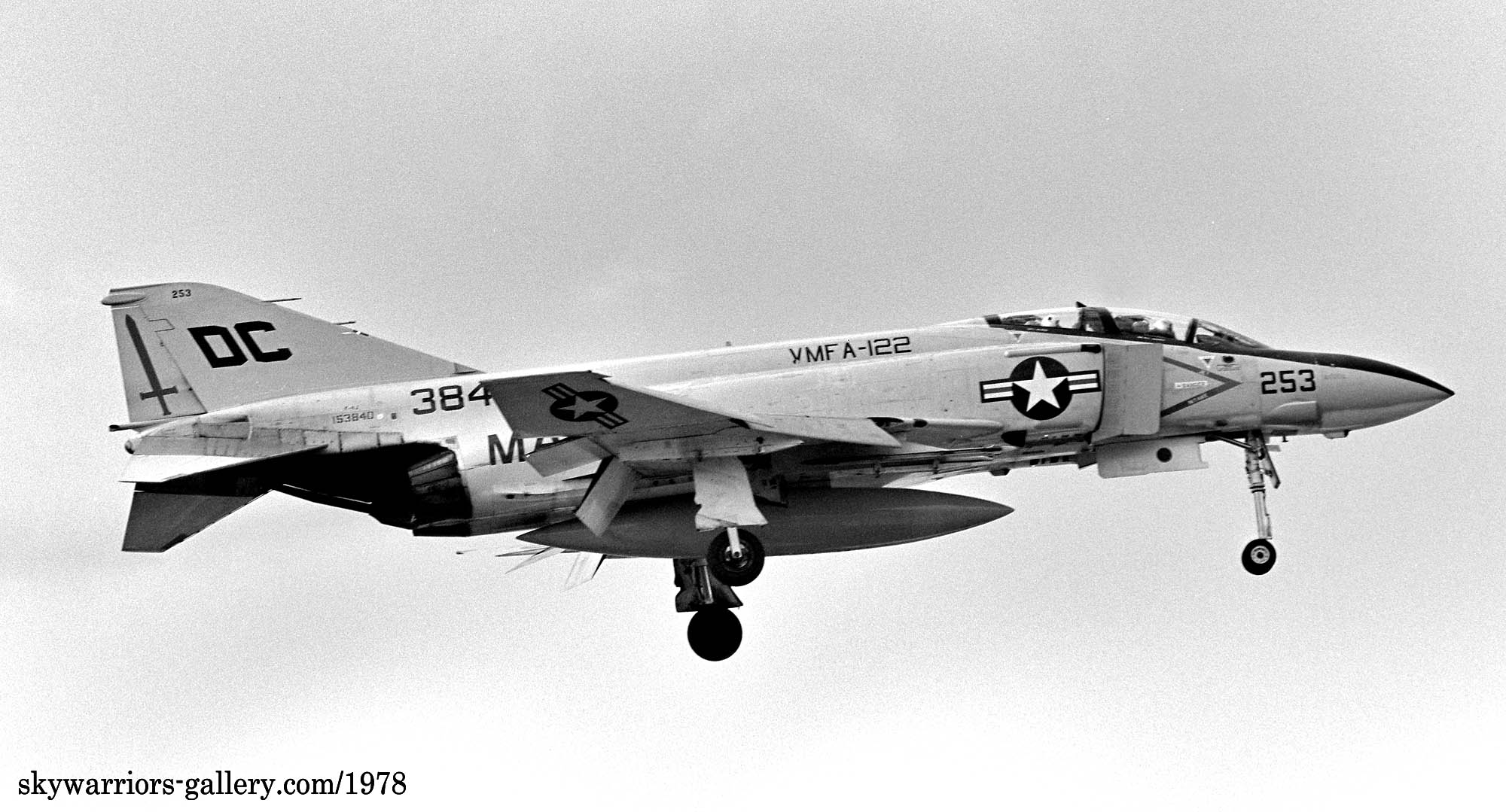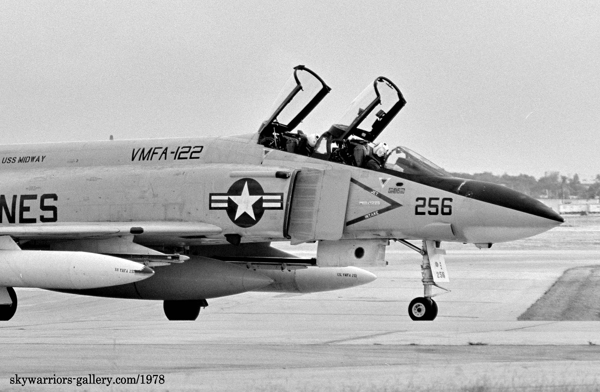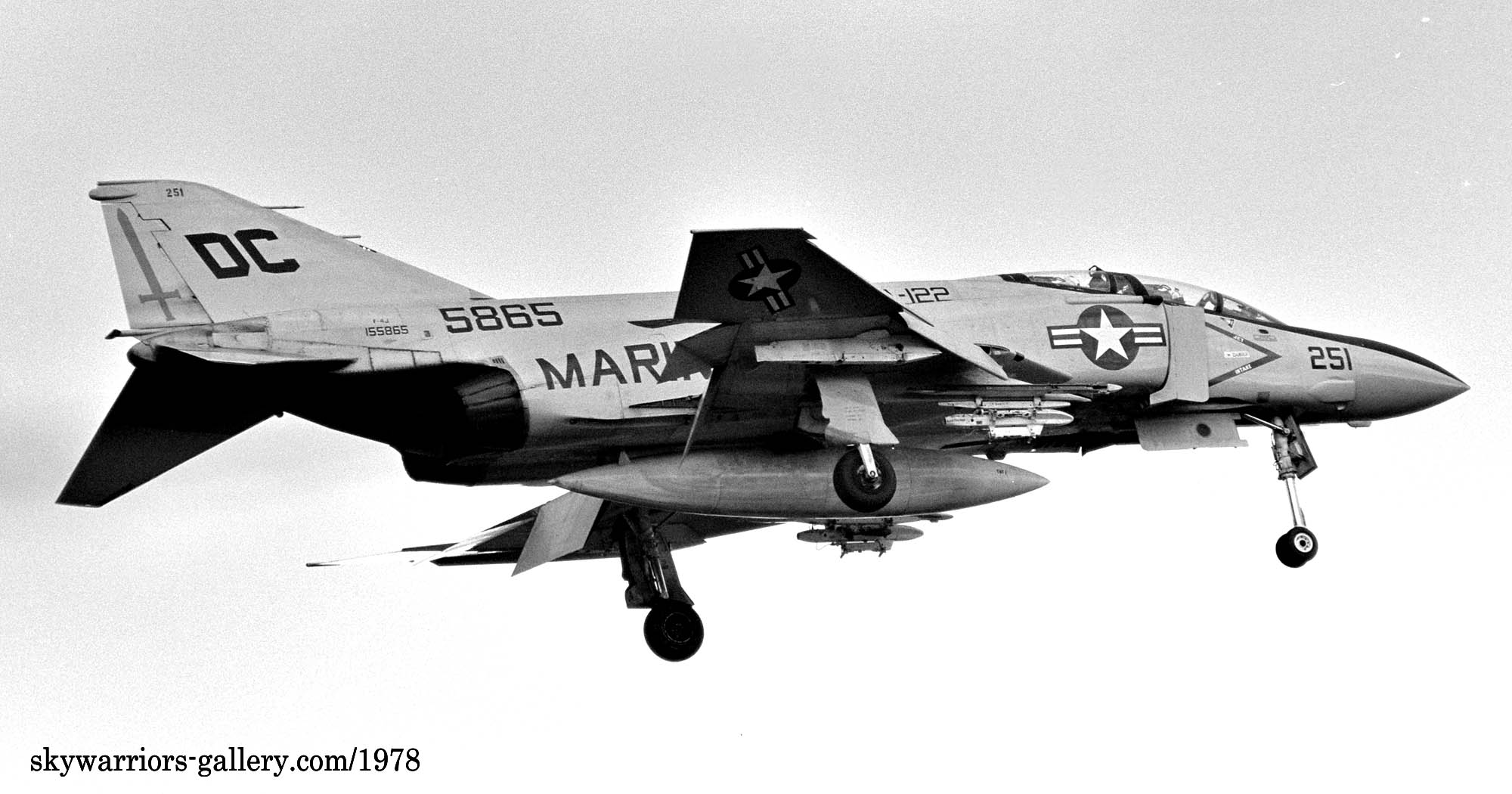 F-4Bを受領したのは1965年1月、この時VMA(AW)-122からVMFA-122に名称変更が行われた。ベトナム戦への参加は2度あり、1400回近い出撃記録を持つ。1975年12月にF-4Jを受領している。同じ1975年F-14トムキャッツへの転換飛行隊の候補とされたが、海兵隊そのものがコスト面で導入を諦めた為、テールレター ”DC”のF-14Aは実現しなかった。後にVMFA-122はF/A-18Aに更新された。