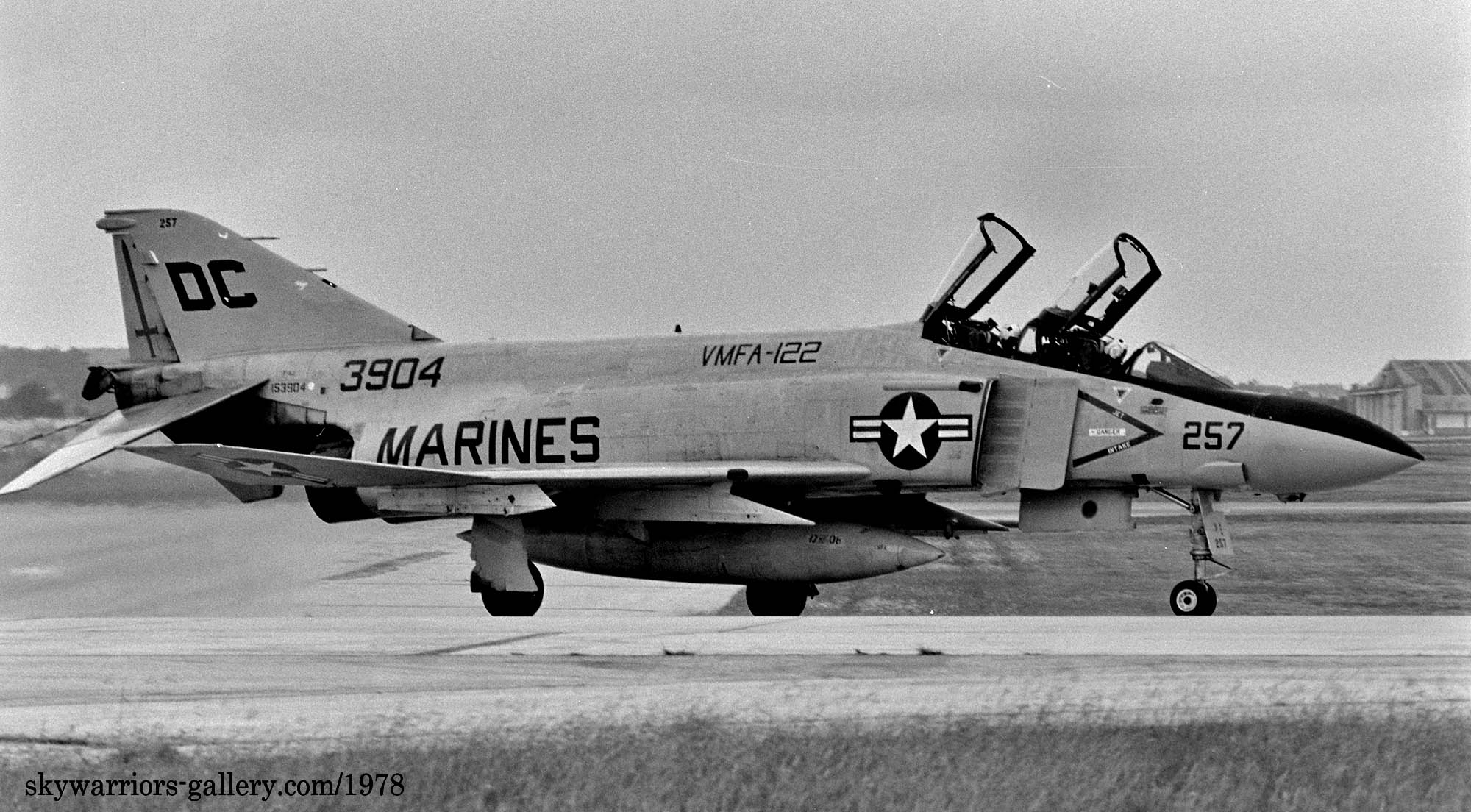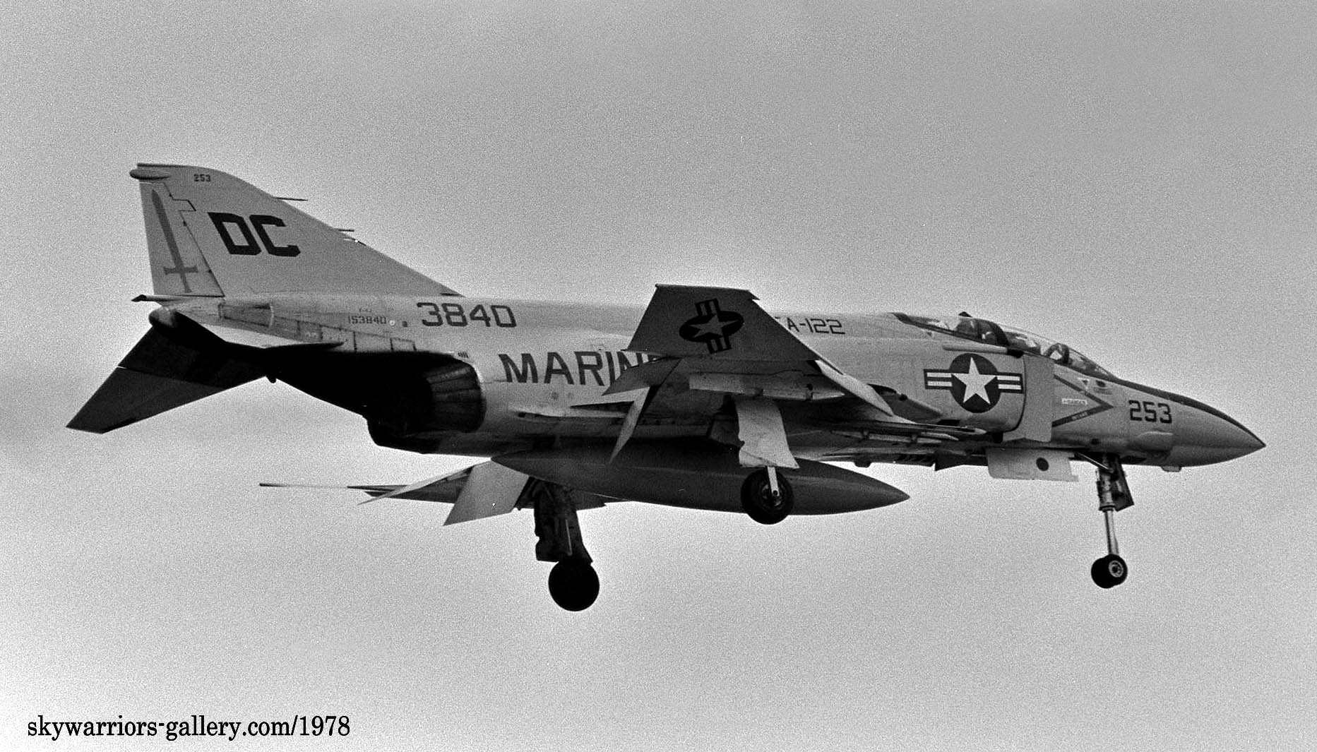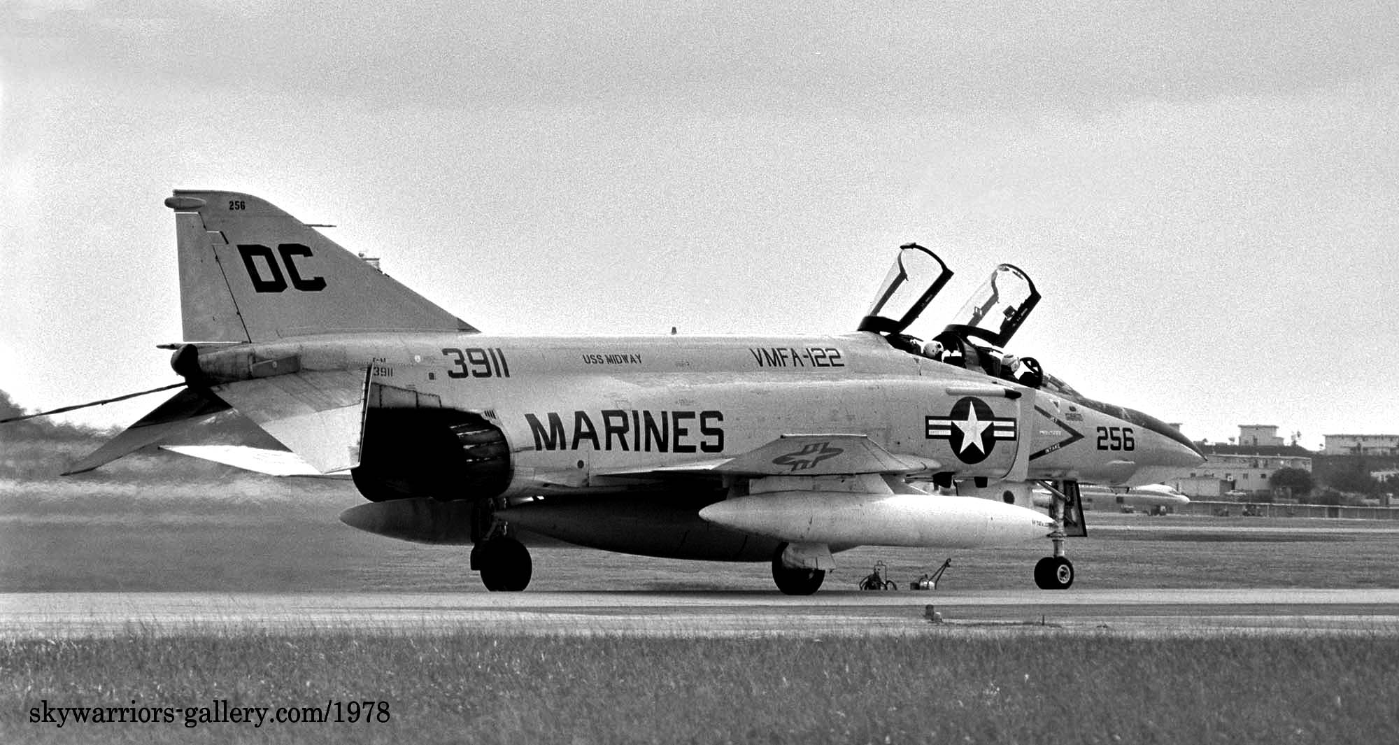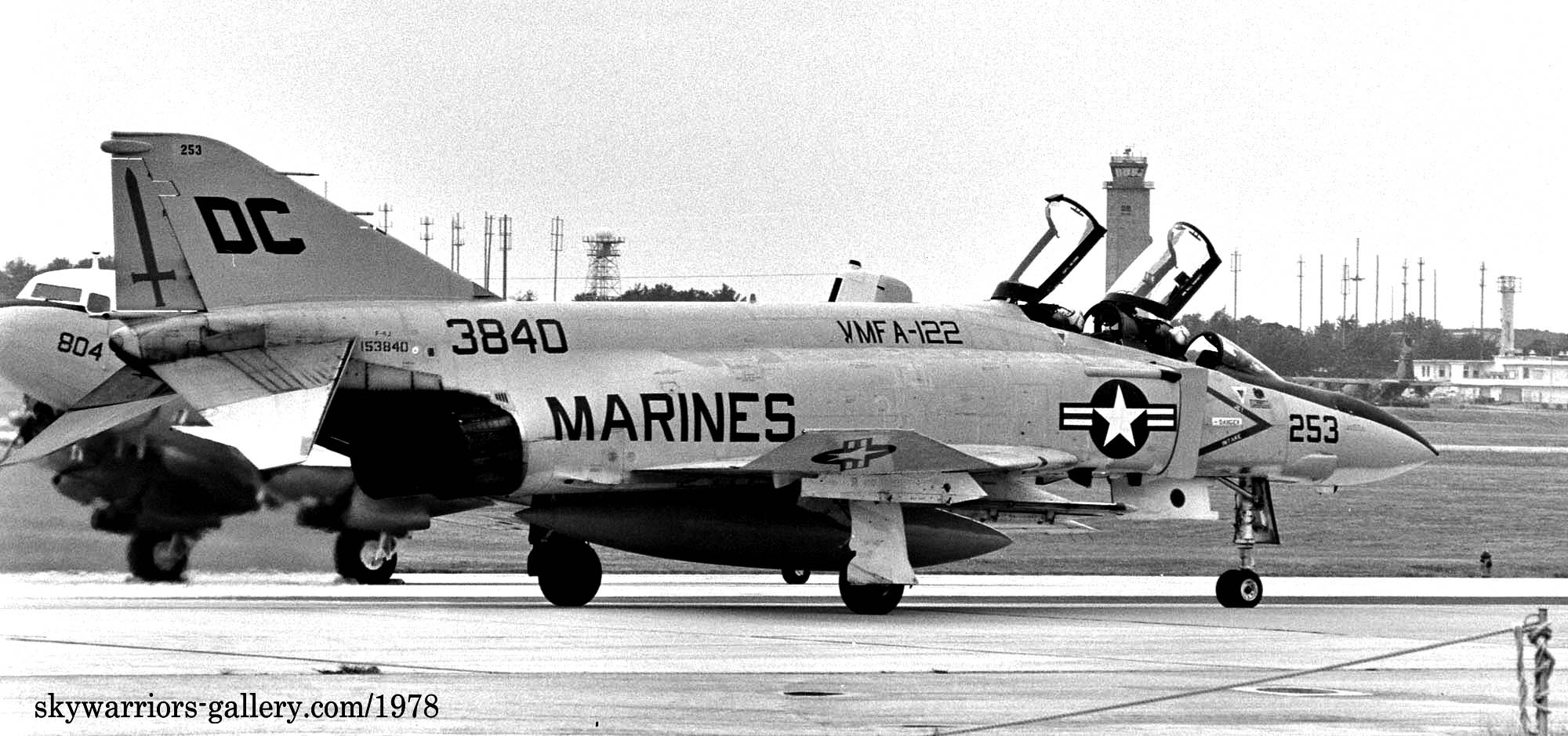 F-4Bを受領したのは1965年1月、この時VMA(AW)-122からVMFA-122に名称変更が行われた。ベトナム戦への参加は2度あり、1400回近い出撃記録を持つ。1975年12月にF-4Jを受領している。同じ1975年F-14トムキャッツへの転換飛行隊の候補とされたが、海兵隊そのものがコスト面で導入を諦めた為、テールレター ”DC”のF-14Aは実現しなかった。後にVMFA-122はF/A-18Aに更新された。