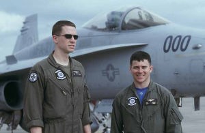 ↑2001年1月 厚木に飛来したFA-18CのWD-5とWD-10、VMFA-212がFA-18Cに機首交換した際のシンプルなマーキングからF-4ファントム時代のプレート(盾)式マーキングを踏襲したデザインに変更、このマーキングがお気に入りだったようで比較的長い間このデザインを変更しなかった。
