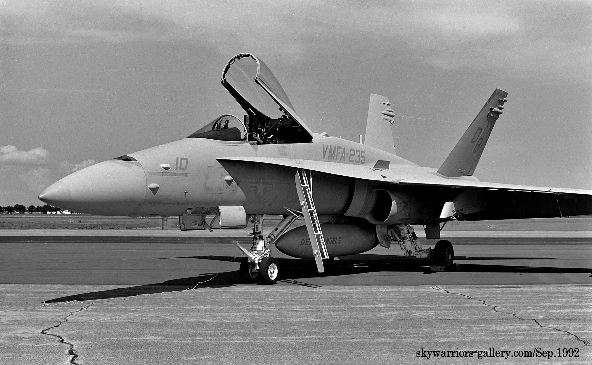 ↑ 1992年9月三沢基地に展示されたVMFA-235 DB-10 Bu.No.163747。1か月前に岩国に配備されたばかりの頃である。下写真の"DB-10"とは、機体も異なるが塗装も若干異なる。