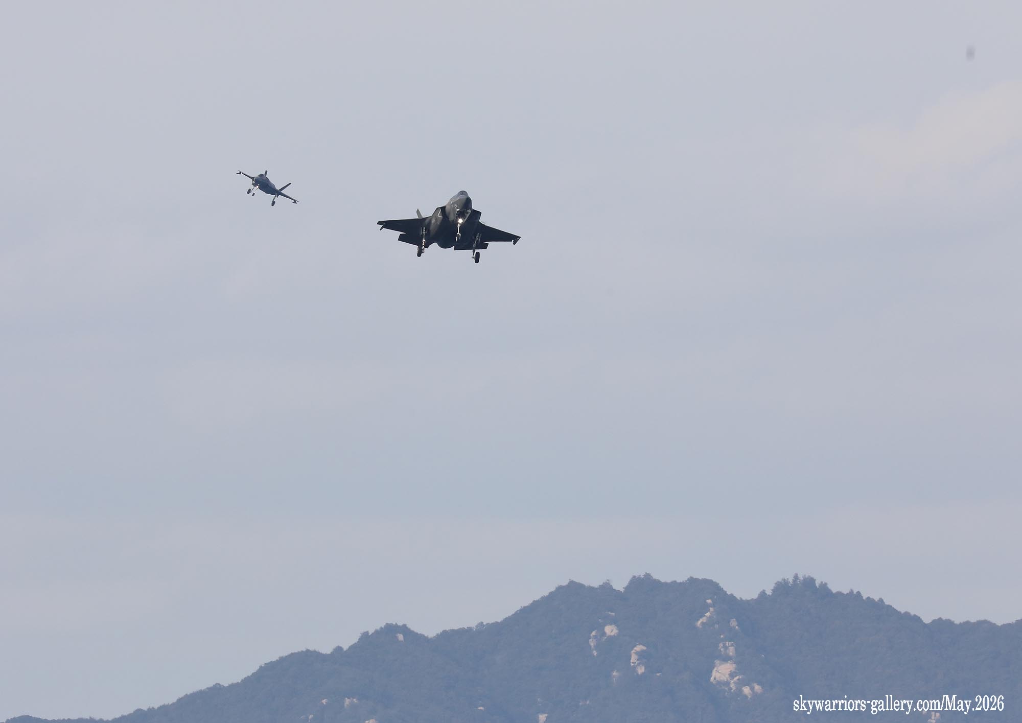 ↑ 訓練を終えて岩国基地に戻るVMFA-242のF-35B。時たま風向きはR/W-20となった。