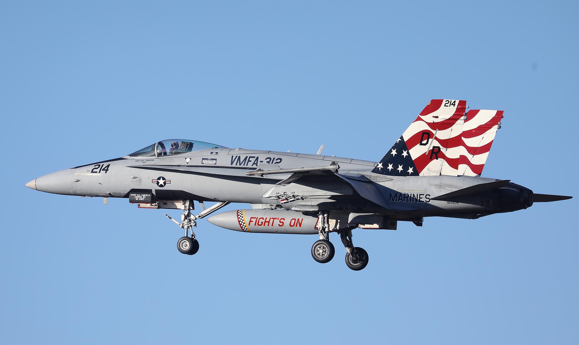 ↑ 尾翼のテールレターが書かれていないのは、「画龍点睛を欠く」が如く大変残念であるが、この部隊の場合、VMFA-312の機首と尾翼のチェックベルトがそれを補ってくれている。