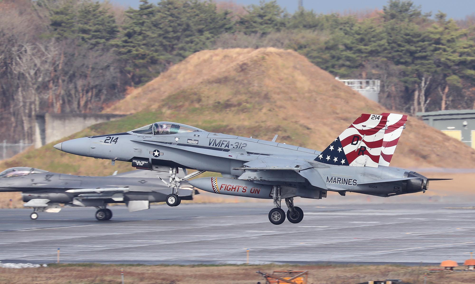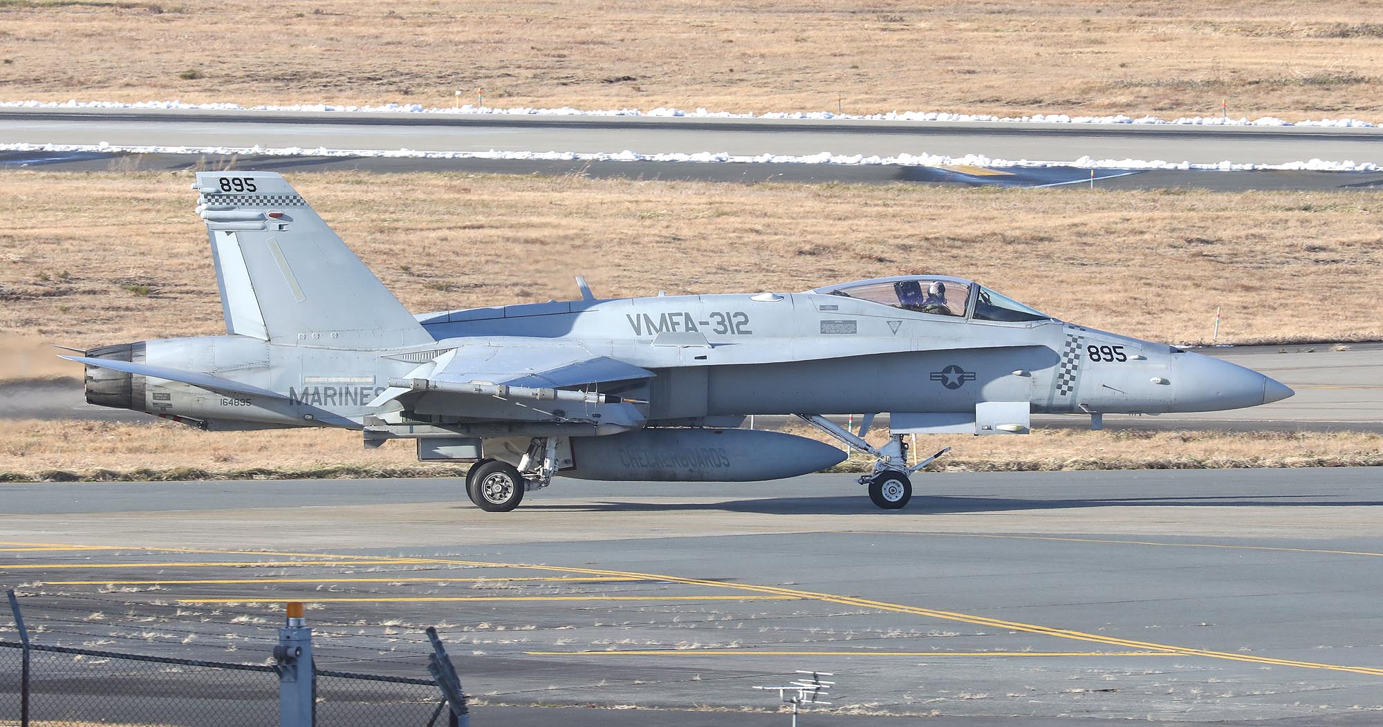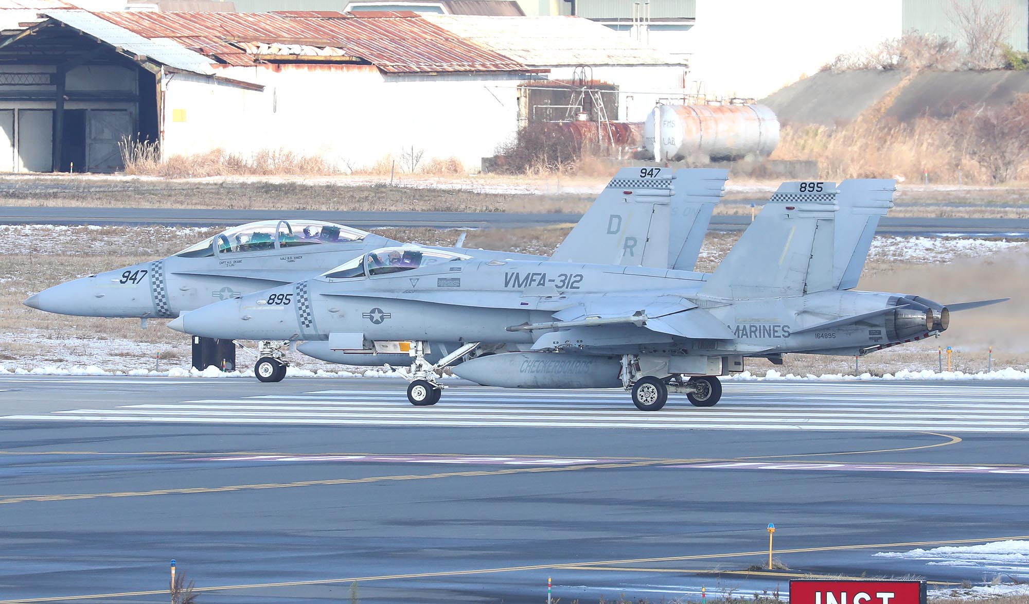 ↑ 演習4日目には残雪も殆ど目立たなくなった。ここ数年海兵隊のFA-18C/D部隊は、短距離空対空ミサイルを全てAIM-9Xで統一しており、古い型のサイドワインダーを目にすることは無くなった。
