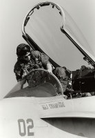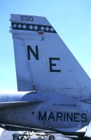 ↑ 2007年3月より空母ジョン・C ステニスと強襲揚陸艦ボノム・リチャードなど9隻の艦隊が、ホルムズ海峡を経てアラビア湾に入り イランなどを牽制した際 空母に搭載されてこの区域での監視活動をしたのが、VMFA-323だった。派遣早々に1機が事故で失われたが、パイロットは救助されている。この時期の司令官指定機NG-200のマーキングは、従来よりもダイヤモンドの入った茶帯が1本多く書き込まれていた。Bu.No.は不明。