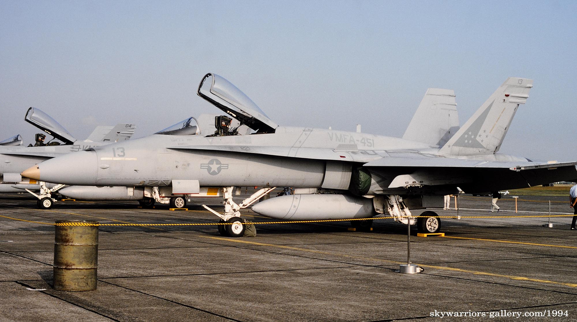 ↑↓1994年11月浜松の航空祭に展示されたVMFA-451のF/A-18A VM-13。1994年7月から1995年の年初まで岩国基地に駐留。