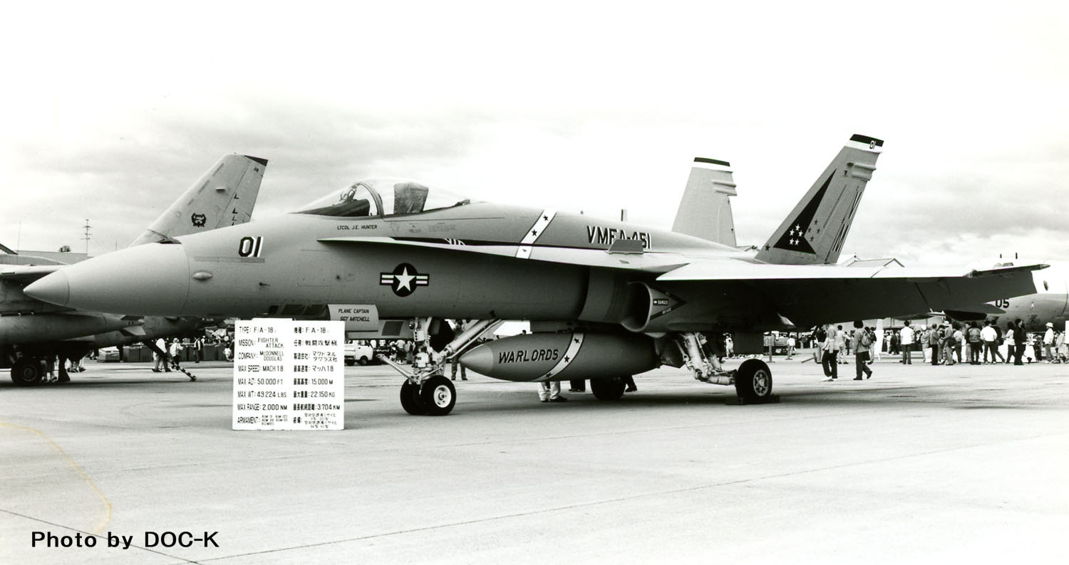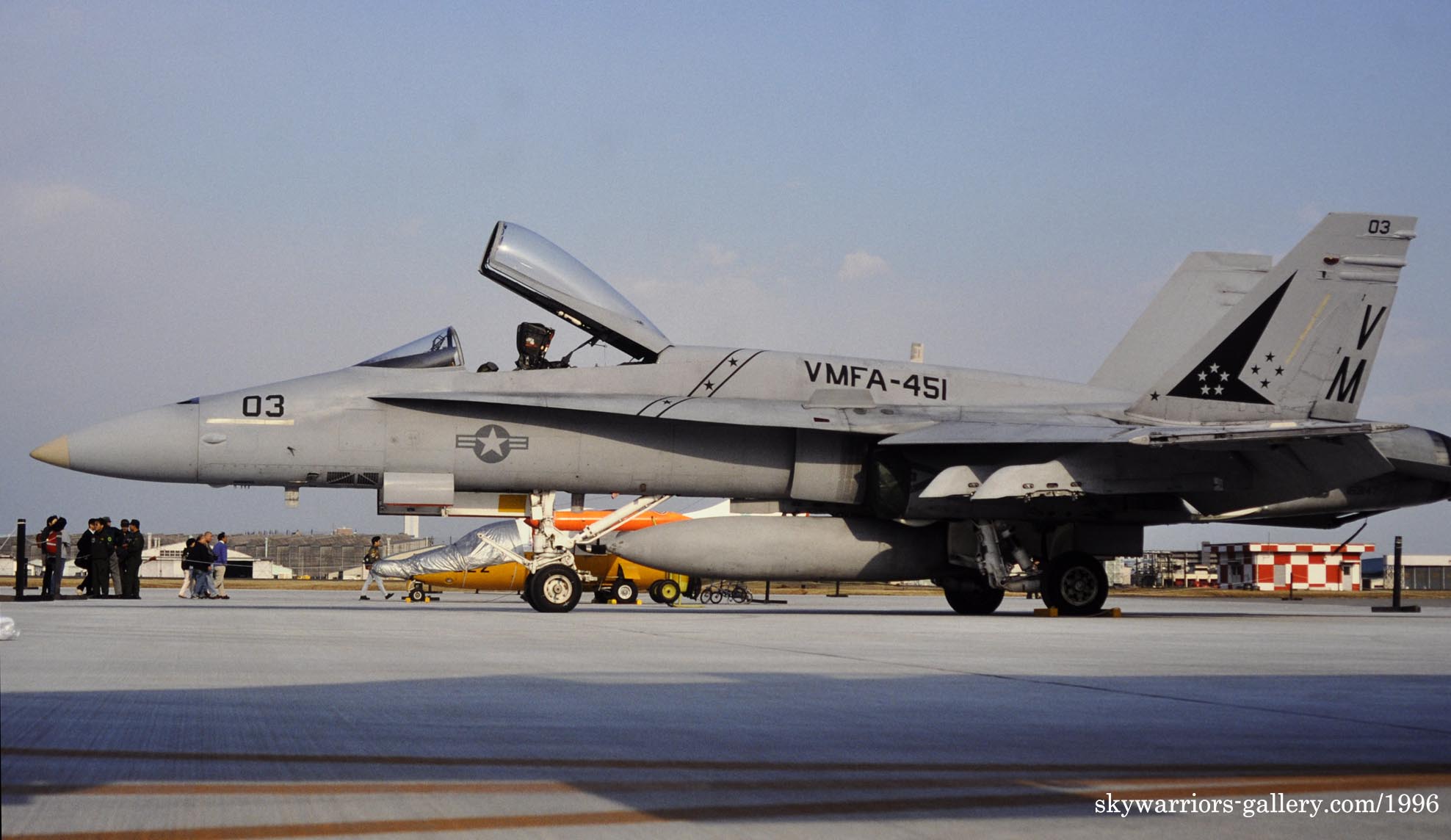 1996年岩国に展示されたVMFA-451 VM-01 フルカラーマーキング。この年鹿屋基地の航空祭にもVM-11と共に展示された。