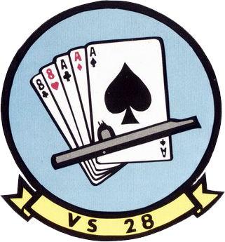 アメリカが中ソとの厳しい対立の最中にあった1960年、その年の6月1日に創設された比較的新しい艦載対潜哨戒飛行隊で、創設と共にS2F-1トラッカーを装備している。世界各地で共産党政権によるドミノ現象が起きており、南ベトナムも北の脅威を受けアメリカの介入が始まろうとしていた。一方1960年は中ソの共産党国家間の対立も始まっており、世界情勢は混とんとしていた。そんな中アメリカ海軍は、特にソ連の弾道ミサイル/攻撃型原子力潜水艦等の増勢や各地に派遣されるアメリカ海軍艦艇に対する潜水艦の脅威に対し、一気に12個もの空母搭載型の対潜哨戒飛行隊を創設したのである。この時に創設されたVS-28は、VS-31と共に対潜専用空母に大量に改造されたエセックス級空母の一隻であったUSSワプス(CVS-18)に搭載されてキューバ危機など5回もの実戦航海に赴いている。1963年に部隊はS-2Eトラッカー対潜哨戒機に更新し、1971年にはUSSサラトガの搭載され、従来のCVSでの運用からCVでの攻撃機部隊との相互運用を行う新しい編成に参加した最初の部隊となっている。飛行隊は1974年1月にS-3Aに更新された。S-3AではUSSアメリカ→USSインディペンデンス→USSフォレスタルと搭載艦がかわり、1990年にS-3Bに更新したがその後直ぐに部隊解散となっている。よってB型バイキングの写真はほとんど残っていない。(2026年2月 記)