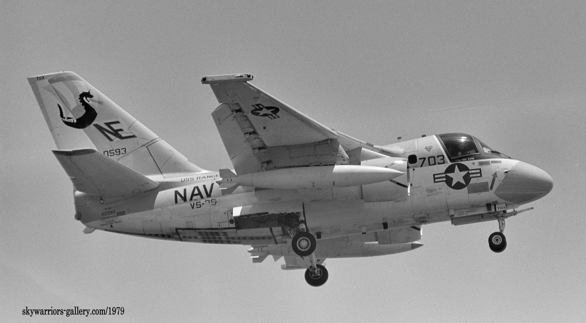 ”DRAGON FIRES”と名づけられたこの部隊は、1960年4月1日に創設された。1964年から太平洋方面での活動が本格化して、ベトナム付近のトンキン湾での活動を行っている。1975年にS-3Aバイキングへ機種転換完了して北欧のバイキングが使用したドラゴンシップをモチーフにしたマークを尾翼に入れていた。1974年7月にS-3Aの1機目を受領しているので VSとしては早いほうである。最初にCVW-14に配属されUSSエンタープライズで航海にでて以来 一貫して太平洋方面で活動してきた部隊である。1976年に2機が横田に飛来している。その後 CVW-2に配属がえになり USSレンジャーに搭載されている頃 嘉手納にも飛来して漸く撮影の機会に恵まれた。このときは、コクピット脇に スーパーマンのSマークを入れていた。その後1981年には、USSキティホークに搭載されCVW-15の傘下で運用されてる。CVW-15がUSSカールビンソンへ移動後は、1984年から1990年まで4回に渡り 同空母で航海に出ている。1991年からはCVW-11に移動し USSリンカーンに搭載されてフィリピンのピナトゥボ山噴火の際スービック湾海軍基地からの退避などで活躍した。部隊は、2004年に閉隊となった。