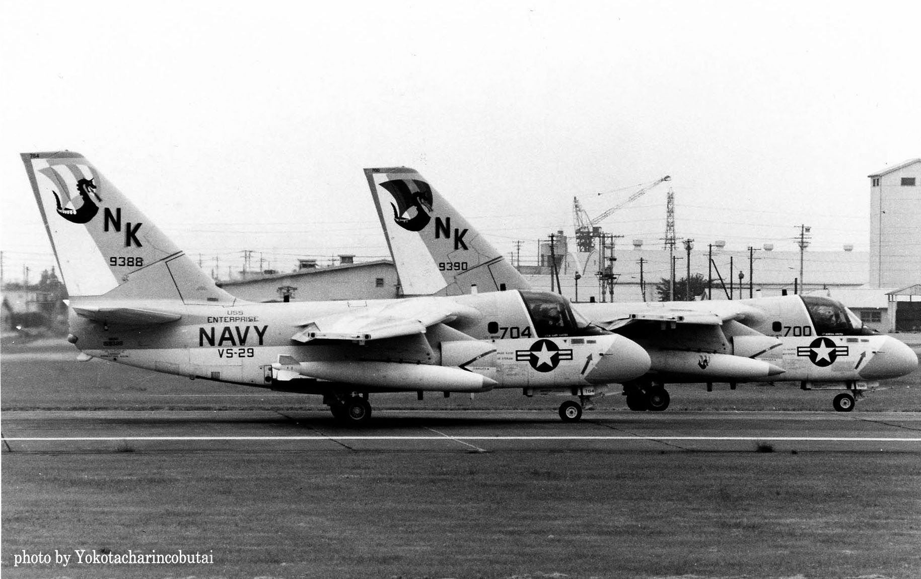 1976年にS-3Aとして横田に初飛来したVS-29、横田ドライブインで知り合った友人が撮影したもので写真を頂いたが、S-3Aを雑誌でしか見たことが無かった私にとっては本当にうらやましかった。この時 原子力空母エンタープライズからの飛来で NK-700のドラゴンシップの帆は、CVW各隊のスコードロンカラ―で塗り分けられていた。
